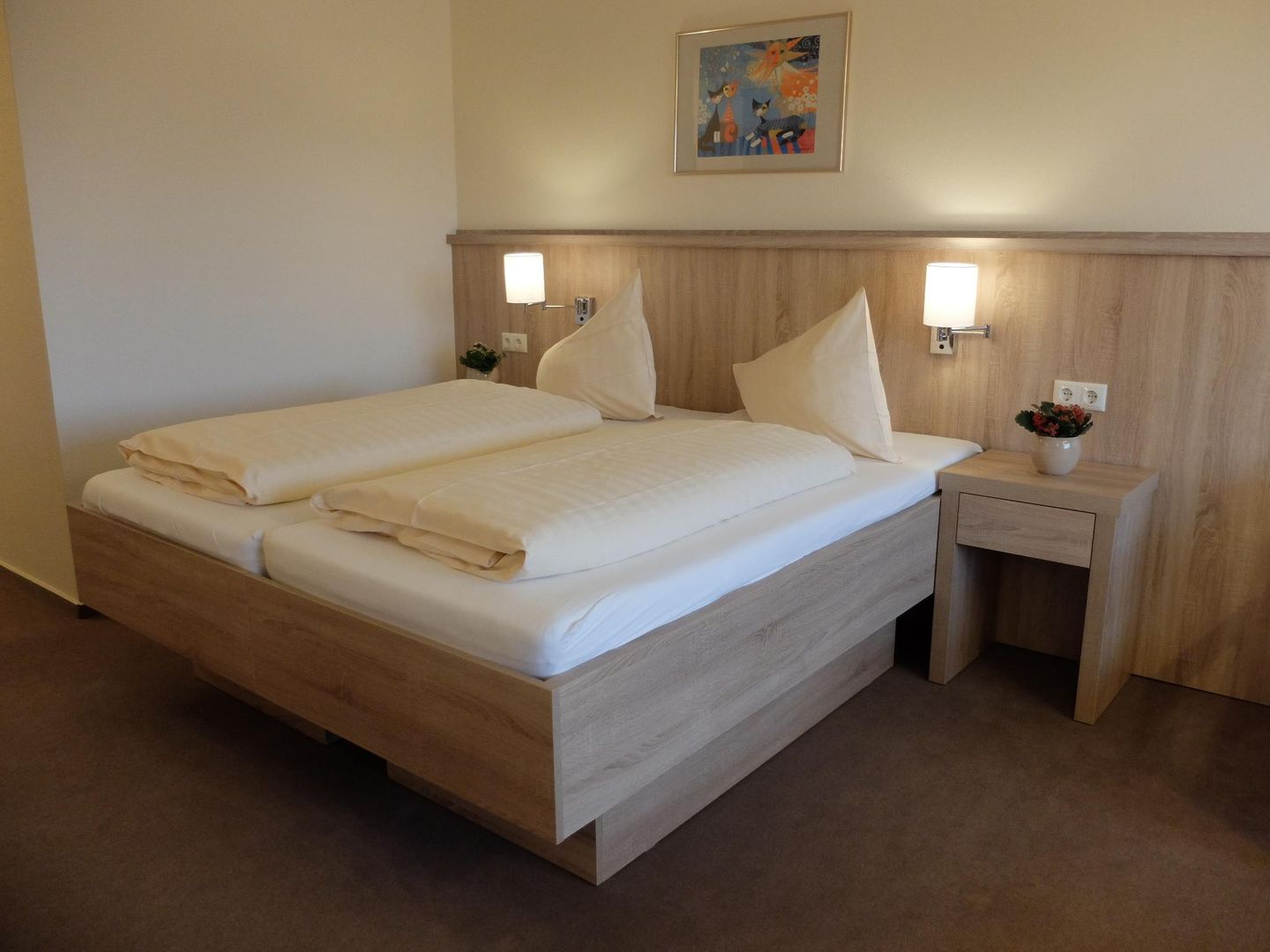 De 20 kamers van het Landgasthaus Pfahl zijn met douche en toilet, flatscreen - tv, veilig, wifi, haardroger, wekkerradio.