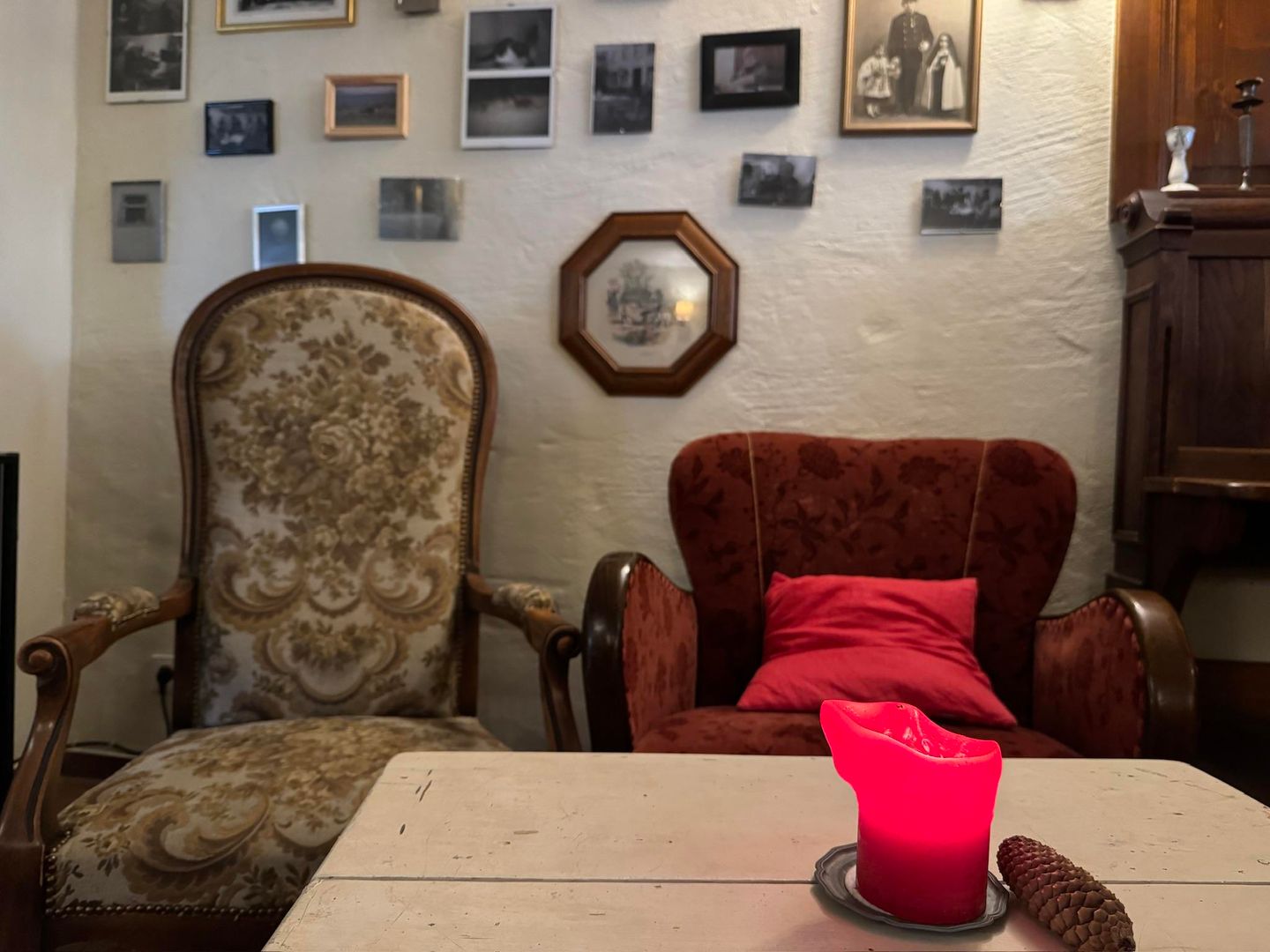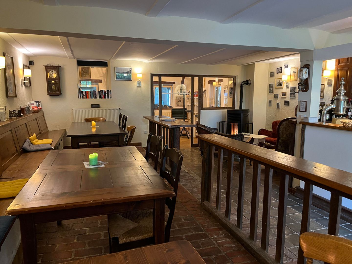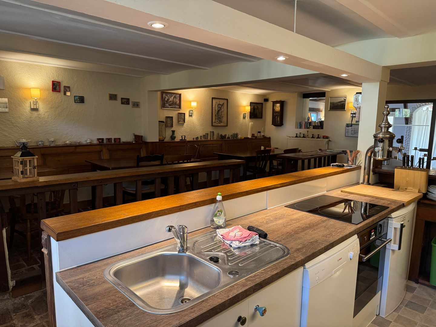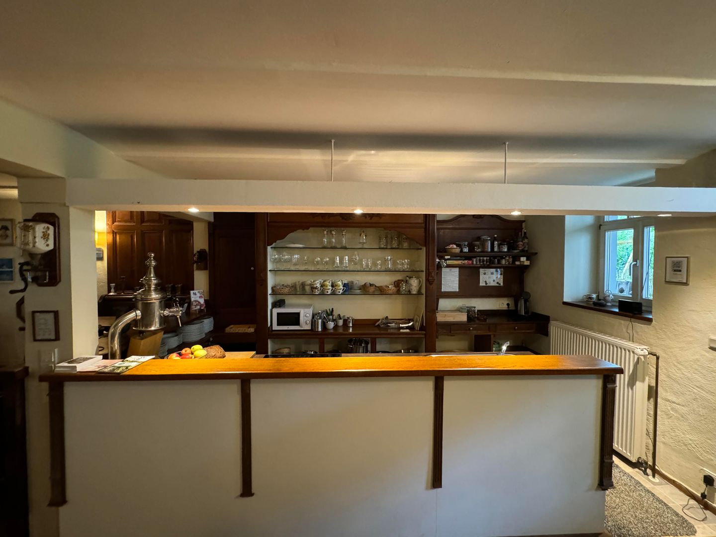 Als je over ons voorplein loopt, kom je in de gezellige eetkamer, die een self-catering keuken heeft. De eetkamer was vroeger een stal, wat je nog steeds kunt zien aan de voederbakken die zijn omgebouwd tot banken en de rustieke stenen vloer. De zelfvoorzienende keuken is uitgerust met al het benodigde kookgerei, evenals een basisvoorraad thee, koffie, kruiden, enz.