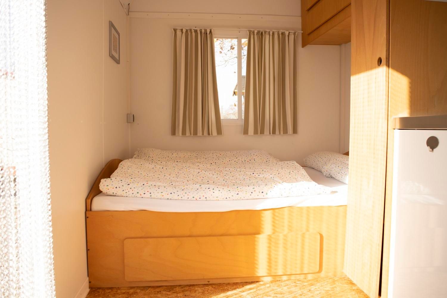 Comfortabele, verrassend charmante woon- en slaapaccommodatie voor 4 personen per caravan. Naast een tweepersoonsbed en een zithoek, die gemakkelijk kan worden omgebouwd tot een tweede tweepersoonsbed, is er ook een kleine keuken. Alle caravans zijn voorzien van verwarming. Douche- en wasgelegenheid en Zweedse biologische composttoiletten zijn ook aanwezig.