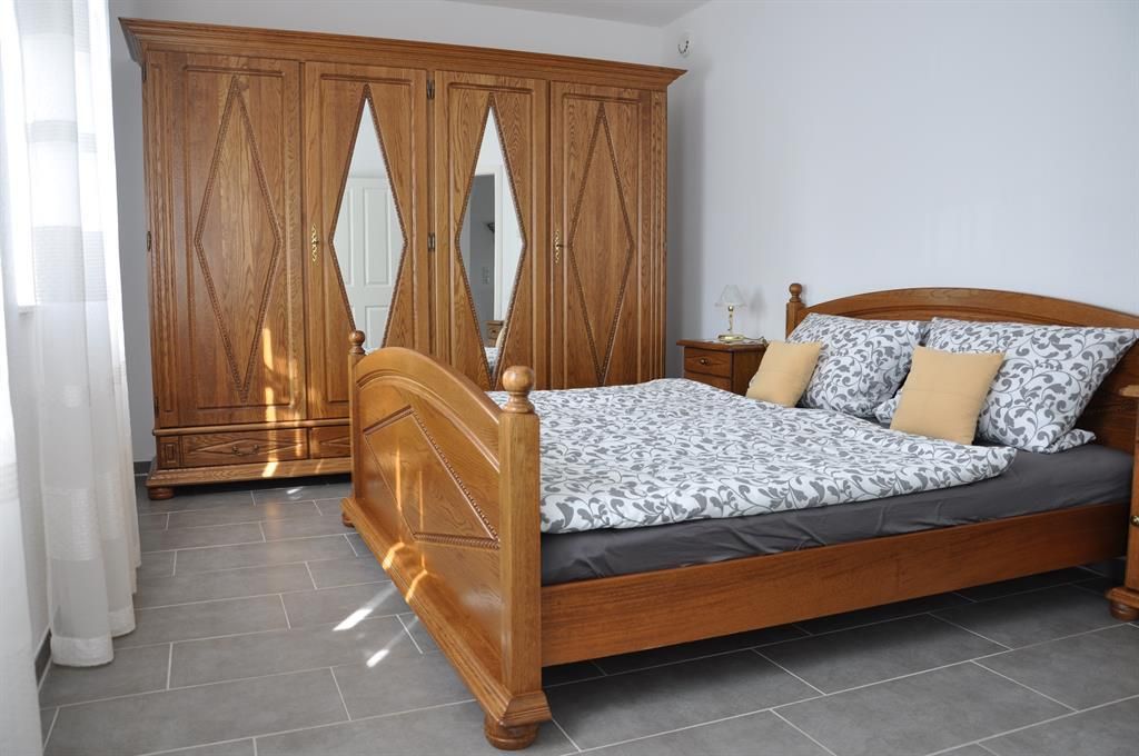 IDEAAL VOOR KLEINE GEZINNEN, WANDELAARS OF FIETSERS Vakantiewoning KLEINE AUSZEIT (gelijkvloers appartement) in Bad Münstereifel-Eicherscheid Om te ontspannen en tot rust te komen, of voor een actieve vakantie op de fiets of te voet Faciliteiten: Eenkamerappartement van 35 m² met ingerichte keuken (koelkast met vriesvak, gootsteen, 2-pits inductiekookplaat, magnetron met grillfunctie, koffiezetapparaat, servies etc.), eethoek voor 4 personen, slaapgedeelte voor 2, max. 3-4 personen incl. beddengoed en handdoeken Bed 140x200 cm, voor 2 volwassenen Slaapbank 140 x 195 cm, voor 2 kinderen max. of 1-2 volwassenen Bureau, Smart-TV Overdekt terras 270 x 480 cm met zitplaatsen voor 4 personen Hal, badkamer met WC, douche, wastafel, haardroger, was-droogcombinatie Hond (op afspraak en tegen betaling) Locatie: Rustig gelegen aan een zijstraat in Bad Münstereifel-Eicherscheid, op ca. 2 km van het historische centrum van Bad Münstereifel met outlet-winkelcentrum, mooie vakwerkhuizen, kleine cafés en restaurants. Ook leuk voor een bezoek aan de kerstmarkt in de historische oude binnenstad van Bad Münstereifel. Ideale, uitdagende routes voor mountainbikers en wandelaars. Directe toegang tot de wandelwereld voor de deur. (E-bike verhuur in Bad Münstereifel), omgeven door bossen, velden, wandel- en fietspaden (Eifellussen en -paden), toegang tot de Jakobsweg in de buurt, vele excursiebestemmingen die de moeite waard zijn (Phantasialand, openluchtmuseum, Nürburgring, openbaar vervoer naar Bonn en Keulen), Eifelbad met reuzenglijbaan en sauna op ca. 2 km afstand.