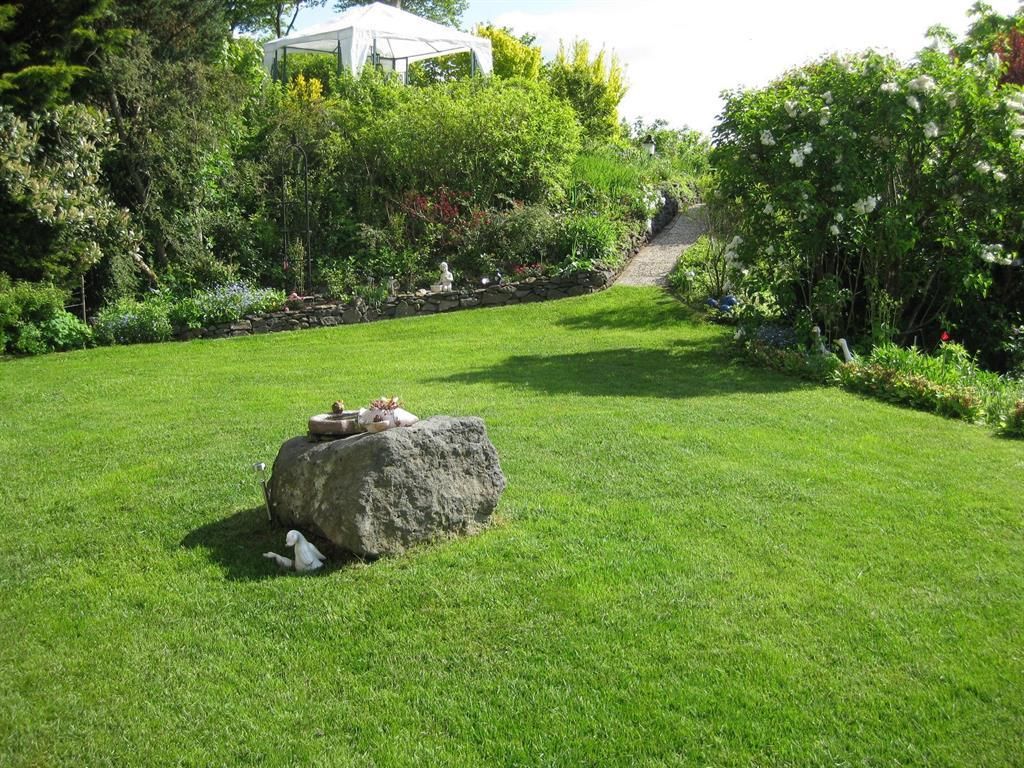 terras met tuinmeubelen, grote tuin met verschillende zitmogelijkheden