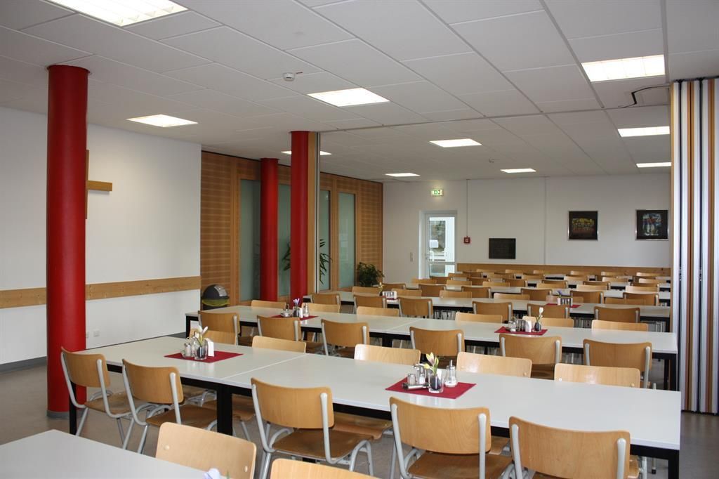 Het jeugdcentrum St. Nikolaus Rursee ligt aan de rand van het dorp Schmidt. De gebouwen van het jeugdcentrum liggen op een bos- en weidegebied van 3 hectare boven het Rurmeer, met het Nationaal Park Eifel in de directe omgeving. Schmidt zelf heeft een toeristisch informatiepunt in de kerk van St Hubertus (in de volksmond St Mokka genoemd), die ook een toeristische attractie op zich is. Het meer zelf ligt op slechts 20-30 minuten lopen. De ruime buitenruimte is ideaal voor een breed scala aan recreatieve activiteiten. Sluit de dag af met een gezellig kampvuur in onze tipi. De Akense Diocesane Vereniging van de Duitse padvindersvereniging St. George (DPSG) is verantwoordelijk voor het jeugdcentrum Rursee. Met 120 bedden in twee huizen biedt het jeugdcentrum het hele jaar door plaats aan iedereen, of het nu gaat om schoolklassen, jeugdverenigingen, jeugd- en volwassenengroepen, cursusgroepen of natuurliefhebbers. Ons volledig verzorgde huis "Haus am Brunnen" biedt plaats aan 82 personen. Sommige kamers zijn uitgerust met douche en WC. Het huis heeft twee individueel te gebruiken verdiepingen, elk met een conferentieruimte. We bieden ook 3 verschillende zelfstandige eenheden van 8 tot 30 personen. Ons vakantiehuis "Landhaus am Scheidbaum" biedt plaats aan 30 personen. Het is uitgerust met een volledig uitgeruste keuken, een rustieke eetkamer en een gezellige gemeenschappelijke ruimte, evenals douche- en wasfaciliteiten. Onze flat "Zur Kapelle" is een kleine zelfstandige eenheid en biedt plaats aan maximaal 8 personen. Het is uitgerust met een moderne, volledig uitgeruste keuken. De keuken dient ook als lounge en biedt ruimte voor gezellige bijeenkomsten. Er is een badkamer met douche, wastafel en toilet, evenals een apart toilet. Er zijn 3 slaapkamers met stapelbedden (2 met twee bedden en een met vier bedden). Het "Haus am Hang" (padvindershuis) is een klein, gezellig vakantiehuis met een landelijke sfeer en eenvoudige inrichting. Het is uitgerust met een kleine, functionele keuken, twee badkamers met douche en toilet en 4 kleine slaapkamers voor elk 2 personen. Twee salons nodigen uit tot gezamenlijke activiteiten en gezellig samenzijn. Een van de groepsruimten is ingericht met een bank, de andere met tafels en stoelen. Hier vind je de ideale omstandigheden voor het organiseren van vrijetijds- en educatieve activiteiten, maar ook voor conferenties, trainingen en vergaderingen.