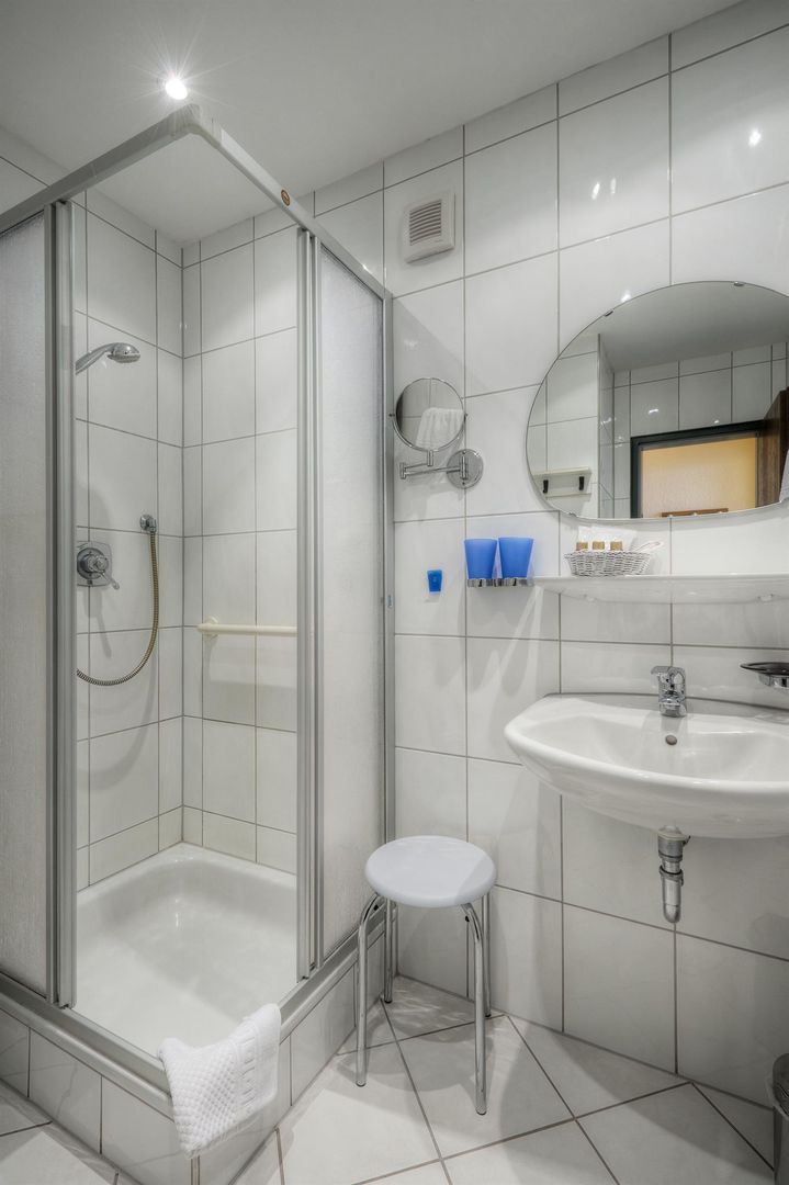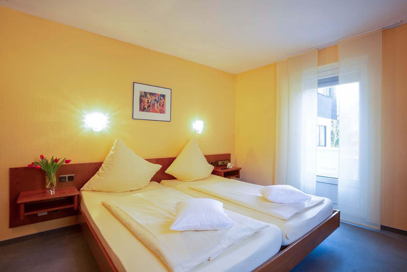 De lift brengt u naar de comfortabele gastenkamers, uitgerust met douche / toilet, balkon, telefoon met directe buitenlijn en tv-aansluiting. Uw dag begint met een uitgebreid "pick-me-up" ontbijtbuffet. Overigens: u mag ook uw hond meenemen!