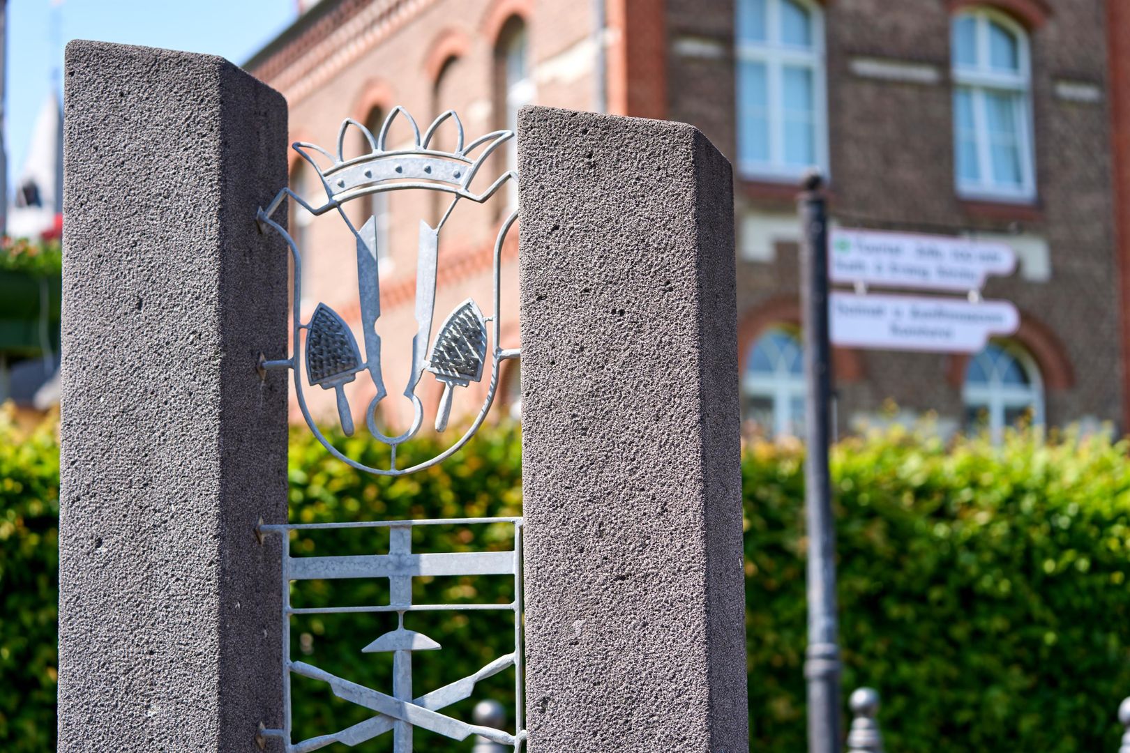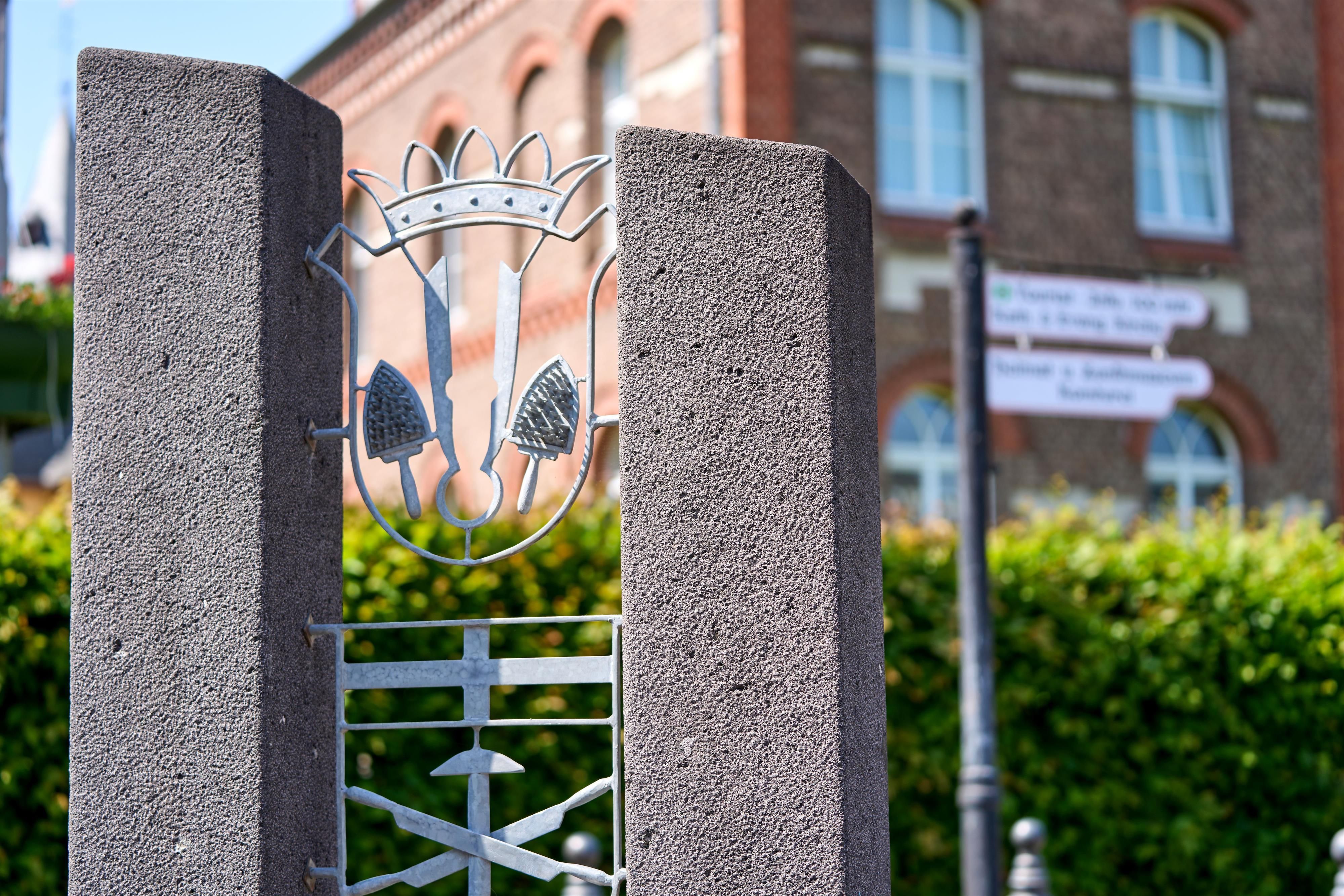 Die schmucken Kunstschmiedearbeiten zur Darstellung der Zünfte am Brunnen wurden vom Kunstschmiedemeister Willi Kiesewalter aus Honerath angefertigt.