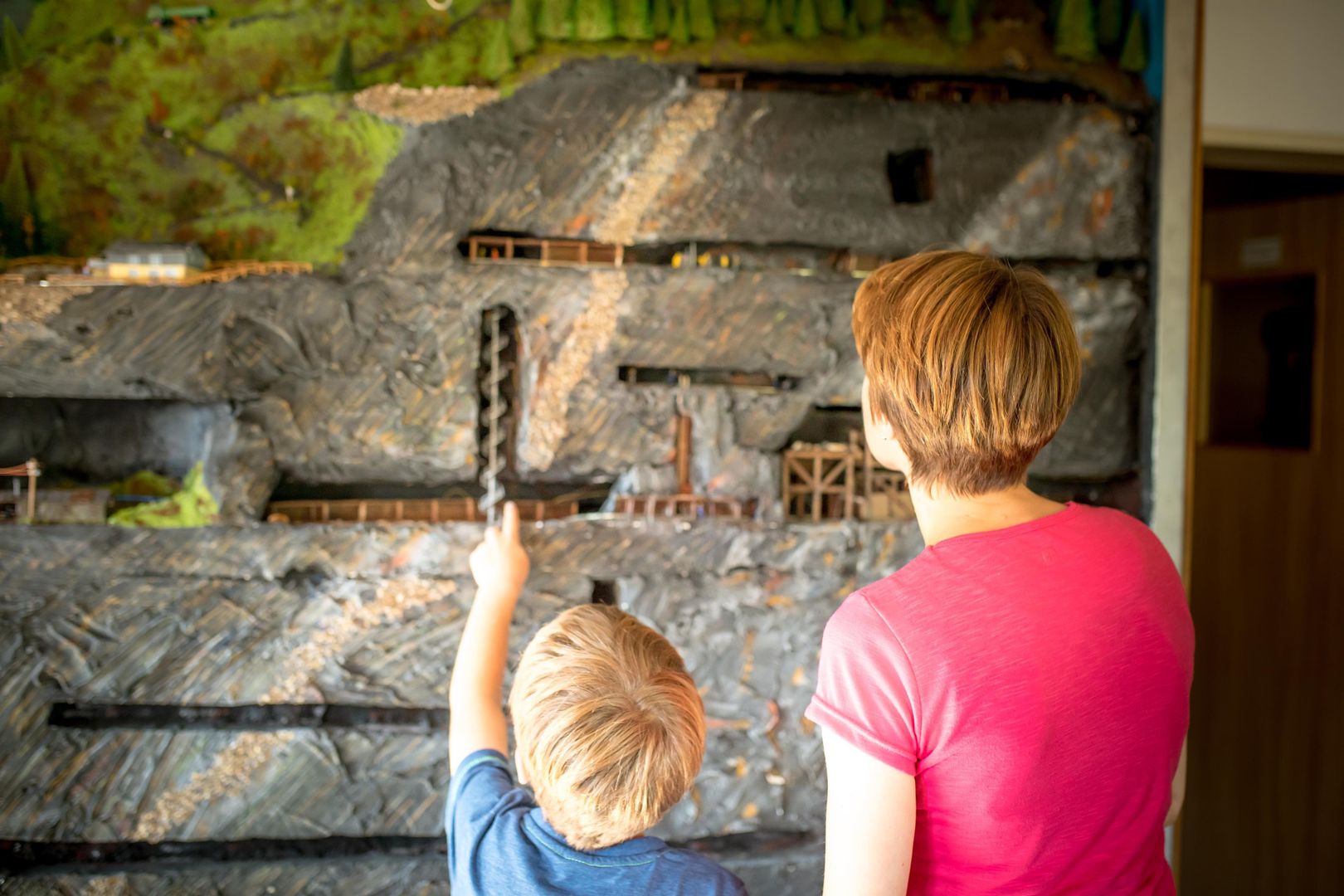Bei allen Führungen bekommt man vorab an einem handgebauten, detailverliebten Modell erklärt, wo genau man sich in der Grube befinden wird. Bevor man in die Grube einfährt wird man mit Helm und geleucht ausgestattet und erfährt wie und ab wann dort schon abgebaut wurde. Die Kelten waren im Spiel, die Römer vielleicht auch? Mehr dazu erfahrt ihr von den Bergwerksführern der Grube Bendisberg.