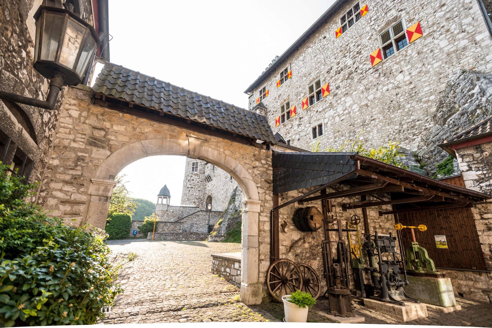 Vom Faches-Thumesnil-Platz aus gelangst du bequem mit dem Aufzug zum Oberen Burghof, dem Foyer, der Gastronomie, dem Rittersaal und der Galerie. Bitte beachte, dass die Bauweise einer mittelalterlichen Burg dazu führt, dass die ausgeschilderten Rundgänge in den Außen- und Innenbereichen leider nicht vollständig barrierefrei sind.