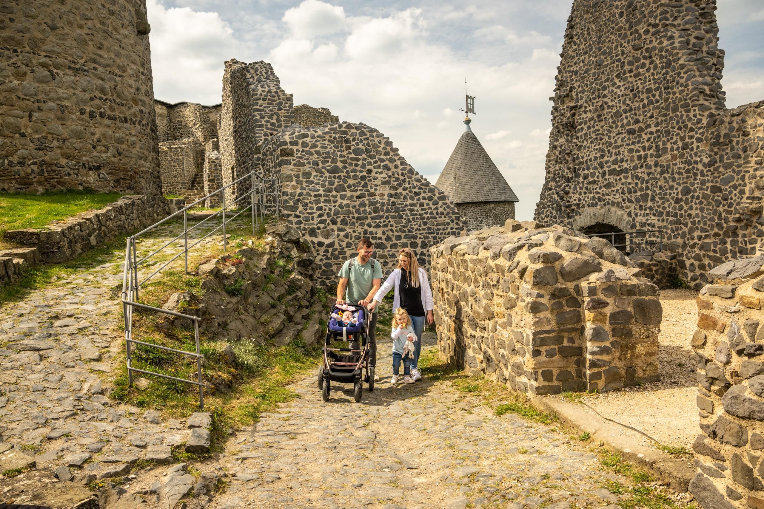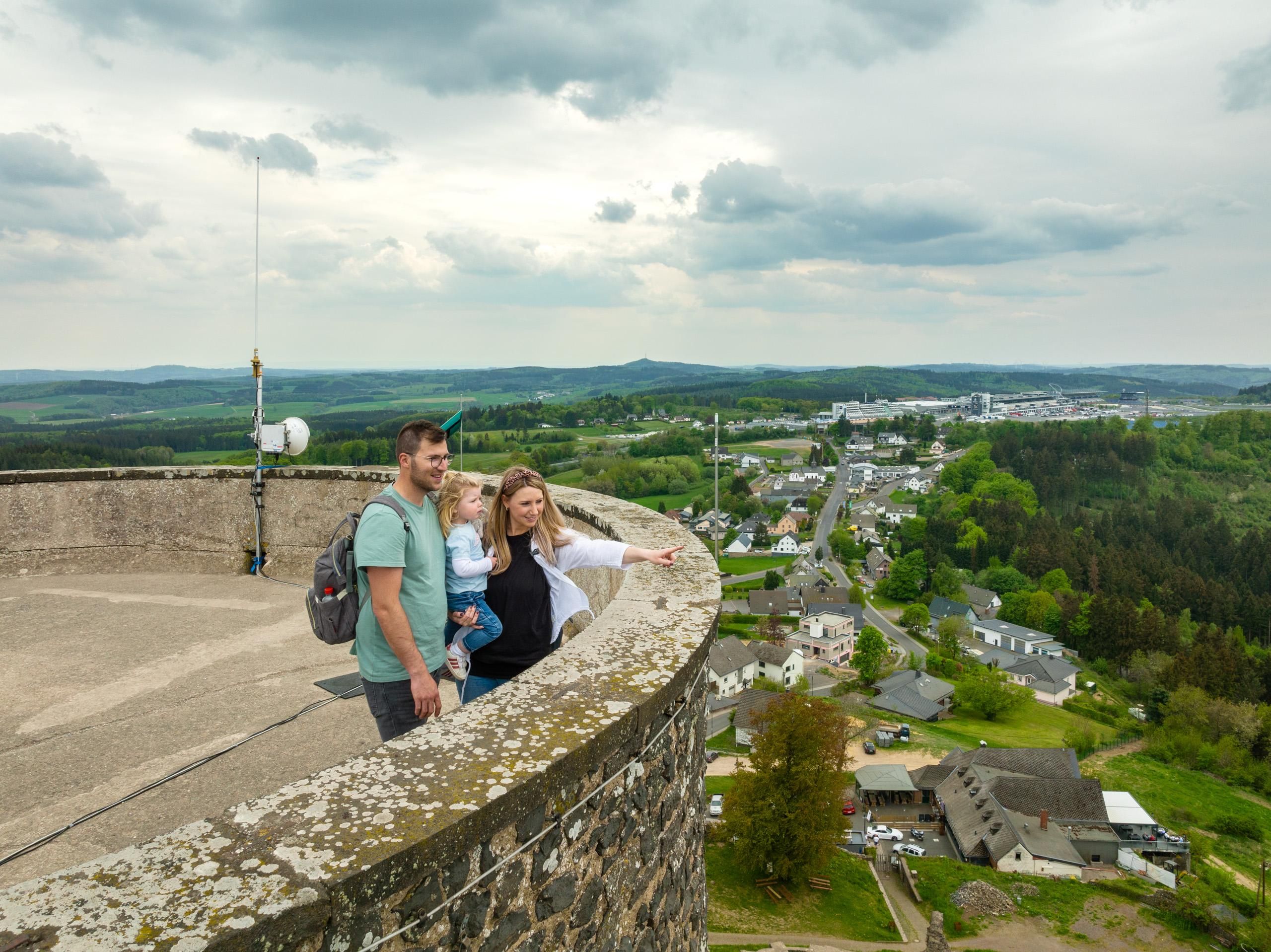 Die Nürburg wurde im 12. Jahrhundert von den Grafen von Are errichtet und über die Jahrhunderte mehrfach erweitert. Heute zeugen die mächtigen Mauern und der imposante Bergfried – auch „Grauer Turm“ genannt – von ihrer bewegten Vergangenheit. Der 20 Meter hohe Bergfried kann bestiegen werden und bietet eine spektakuläre Rundumsicht über die Hocheifel, die umliegenden Dörfer und die berühmte „Grüne Hölle“ – die Nordschleife des Nürburgrings.