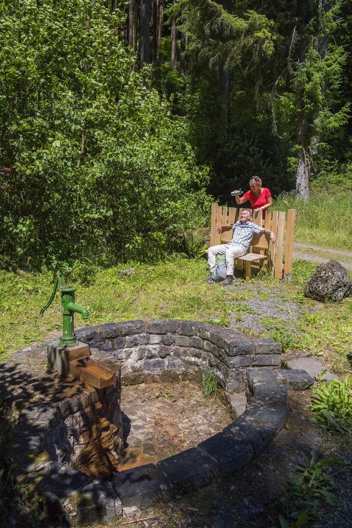 Der Muße-Platz am Vulcano-Pfad lädt Wanderer zum Verweilen ein. Auf einer illustrierten Tafel ist die Geschichte des Drees dokumentiert. Leider besitzt der fluoridhaltige Natrium-Magnesium-Calcium-Hydrogencarbonat Säuerling keine Trinkwasserqualität.