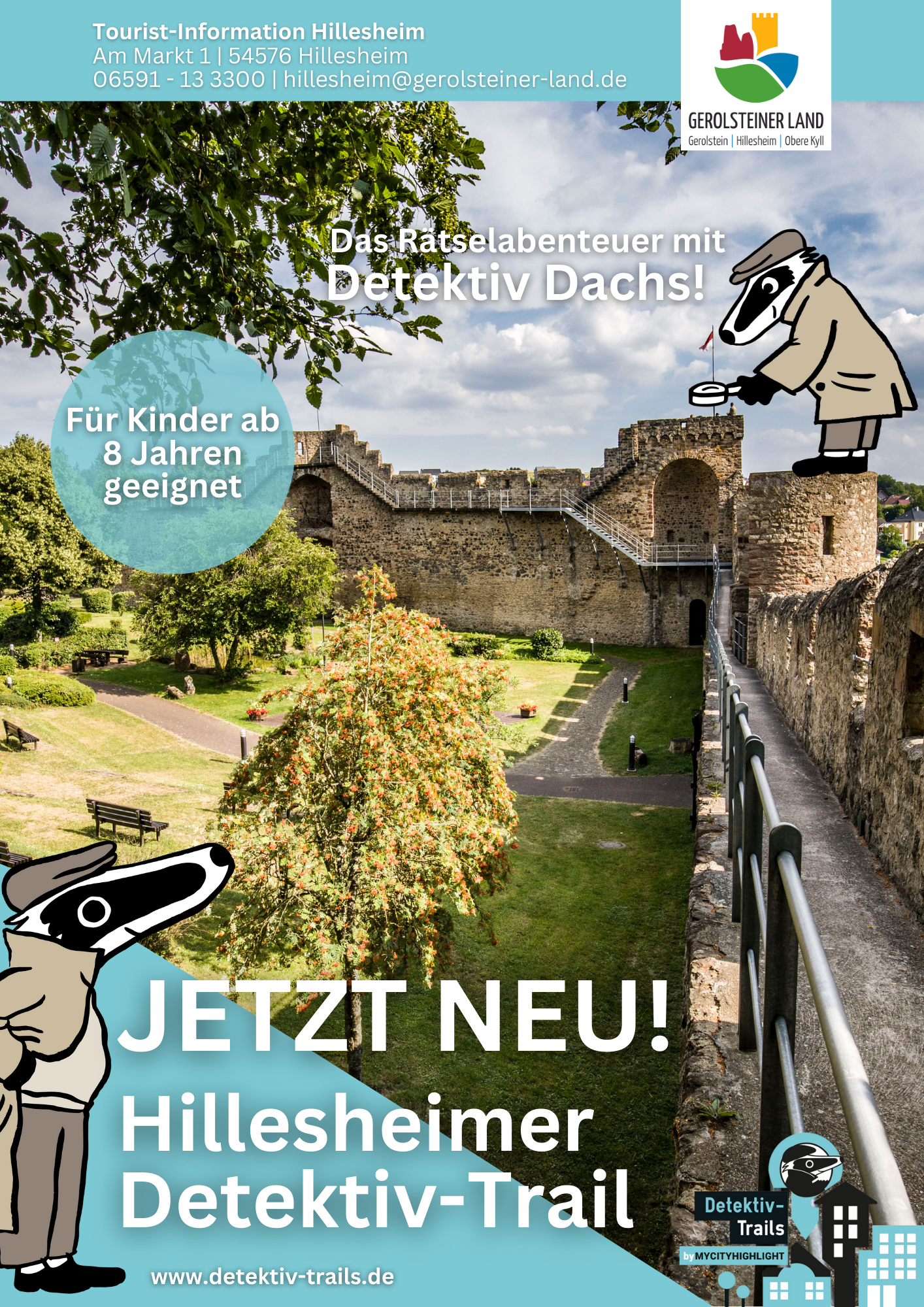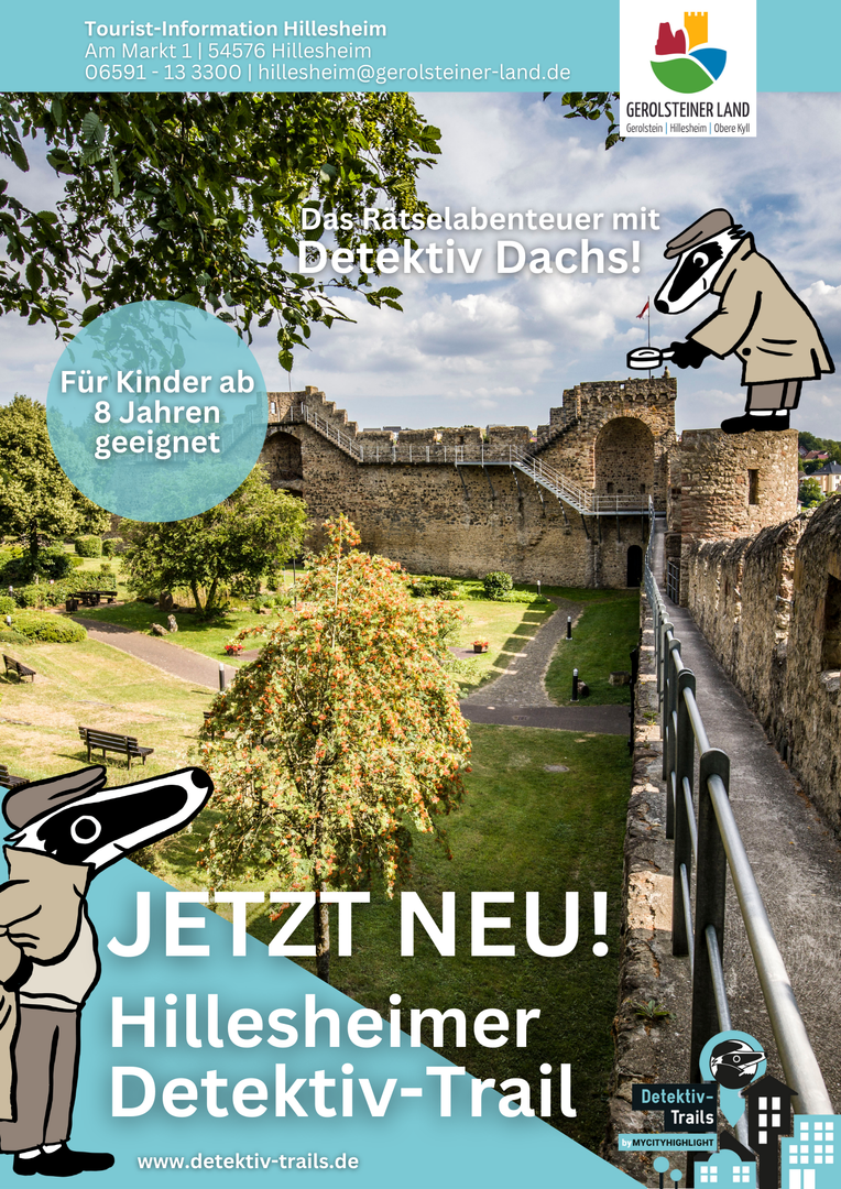 Die Krimistadt Hillesheim erweitert ihr Angebot: Nach dem 2020 eröffneten Krimi-Trail gibt es in Zusammenarbeit mit MyCityHighlight Europe GmbH nun eine neue Rätseltour für Familien, Vereine und Schulen: den Detektiv-Trail.