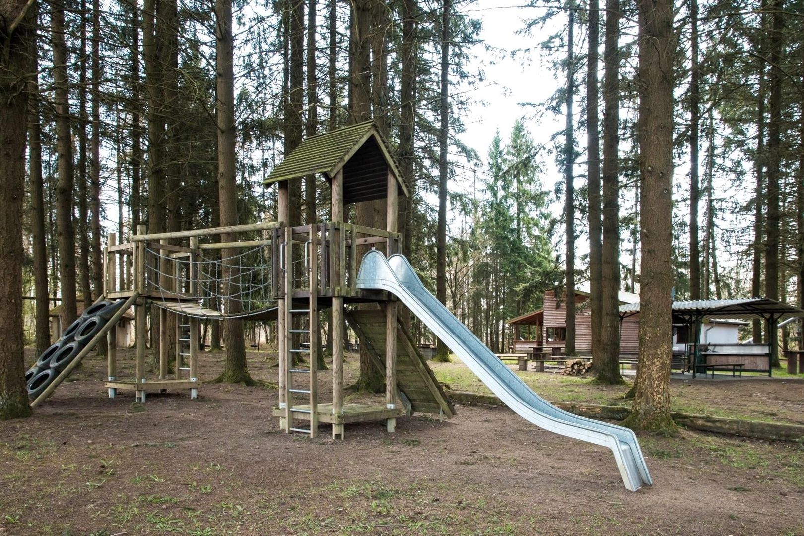 Der schön im Wald gelegene Spielplatz an der Drei Eichen Hütte in Lutzerath ist besonders geeignet für heiße Sommertage. Da der Platz in der Nähe der Wanderwege "HeimatSpur Erlebnispfad Achterhöhe" oder "HeimatSpur Wald-Wohlfühl-Weg" liegt, lässt sich eine kleine Wanderung mit der Familie wunderbar mit einem schönen Abschluss auf dem Spielplatz verbinden. Die große Bank lädt zum Picknicken ein.