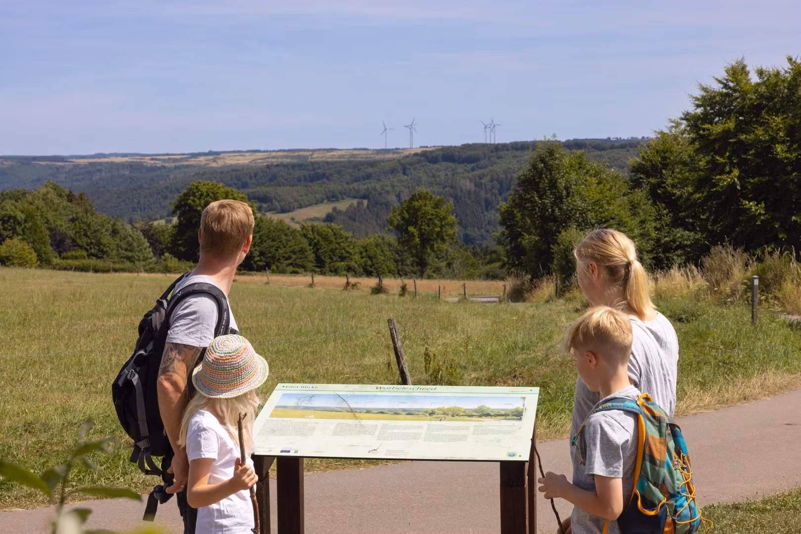 Auf einer Höhe von 530m liegt der Eifel-Blick „Worbelescheed“, der eine fantastische Weitsicht über den weitläufigen Höhenzug und den Nationalpark Eifel mit Kermeter und Dreiborner Hochfläche bietet. Die vielen Windräder in der Ferne gehören zu den Windparks in Dreiborn und Schöneseiffen.