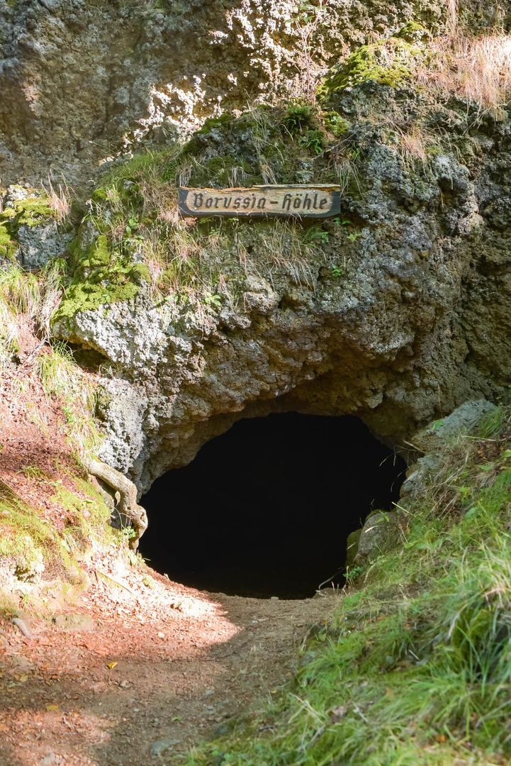 Tipp: Ein kleiner Rundweg erschließt die Mühlsteinhöhlen im Mühlenberg in Hohenfels-Essingen