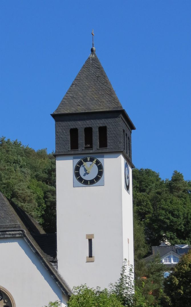 Der heutigen, am 26. April 1914 eingeweihten evangelischen Erlöserkirche ging ein Betsaal im ehemaligen ev. Pfarrhaus voraus. Nachdem die Kirchengemeinde 1894 selbständig geworden war, wurde der Bau einer eigenen Kirche geplant. Am 06. Juni 1913 erfolgte dann die Grundsteinlegung zu der Kirche, deren Pläne von dem Berliner Architekten Franz Schwechten (Kaiser-Wilhelm-Gedächtnis-Kirche in Berlin, Kirche in Mirbach/Eifel, Erlöserkirche in Jerusalem) stammen.