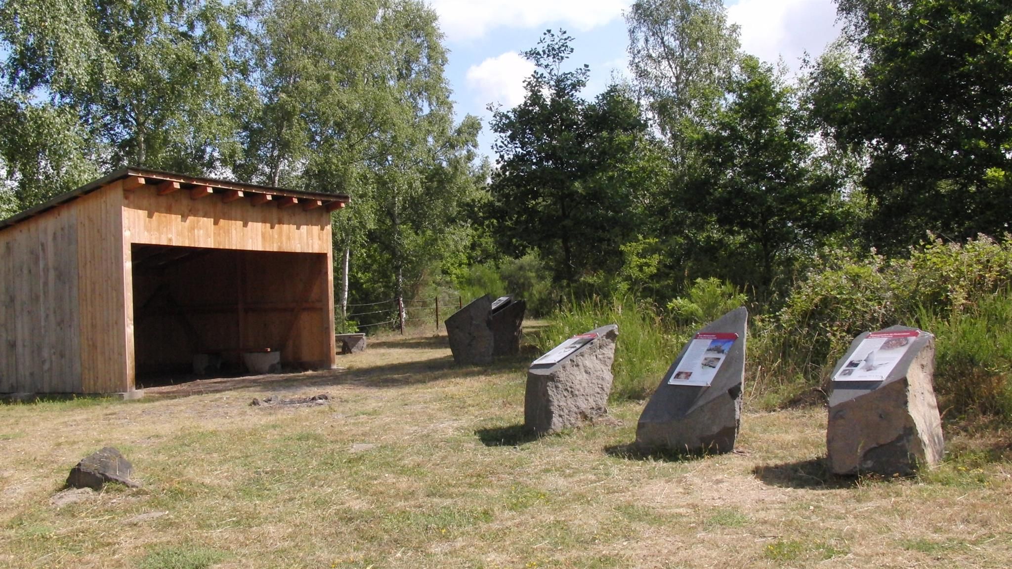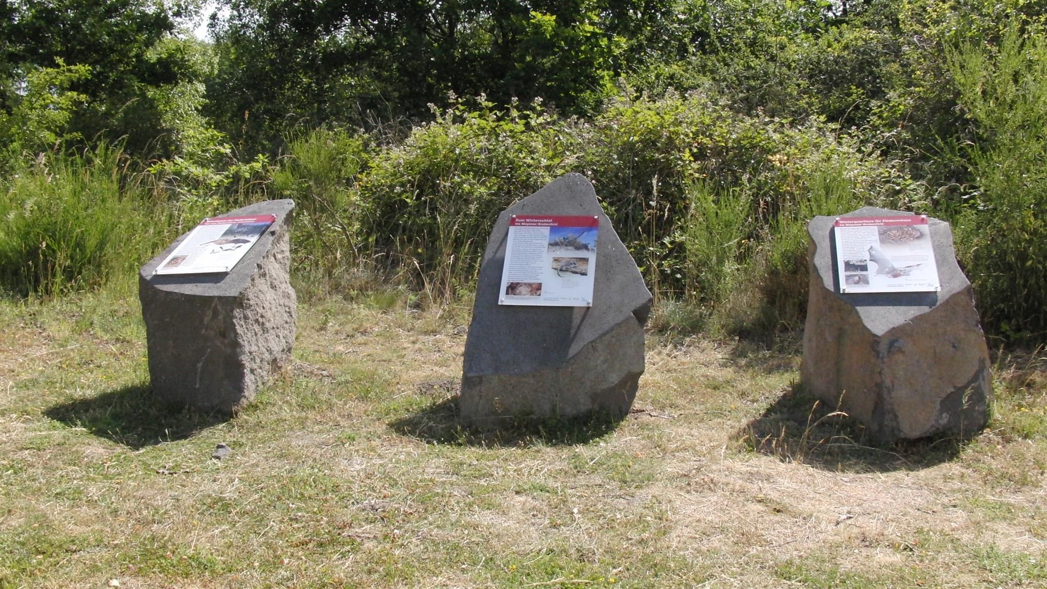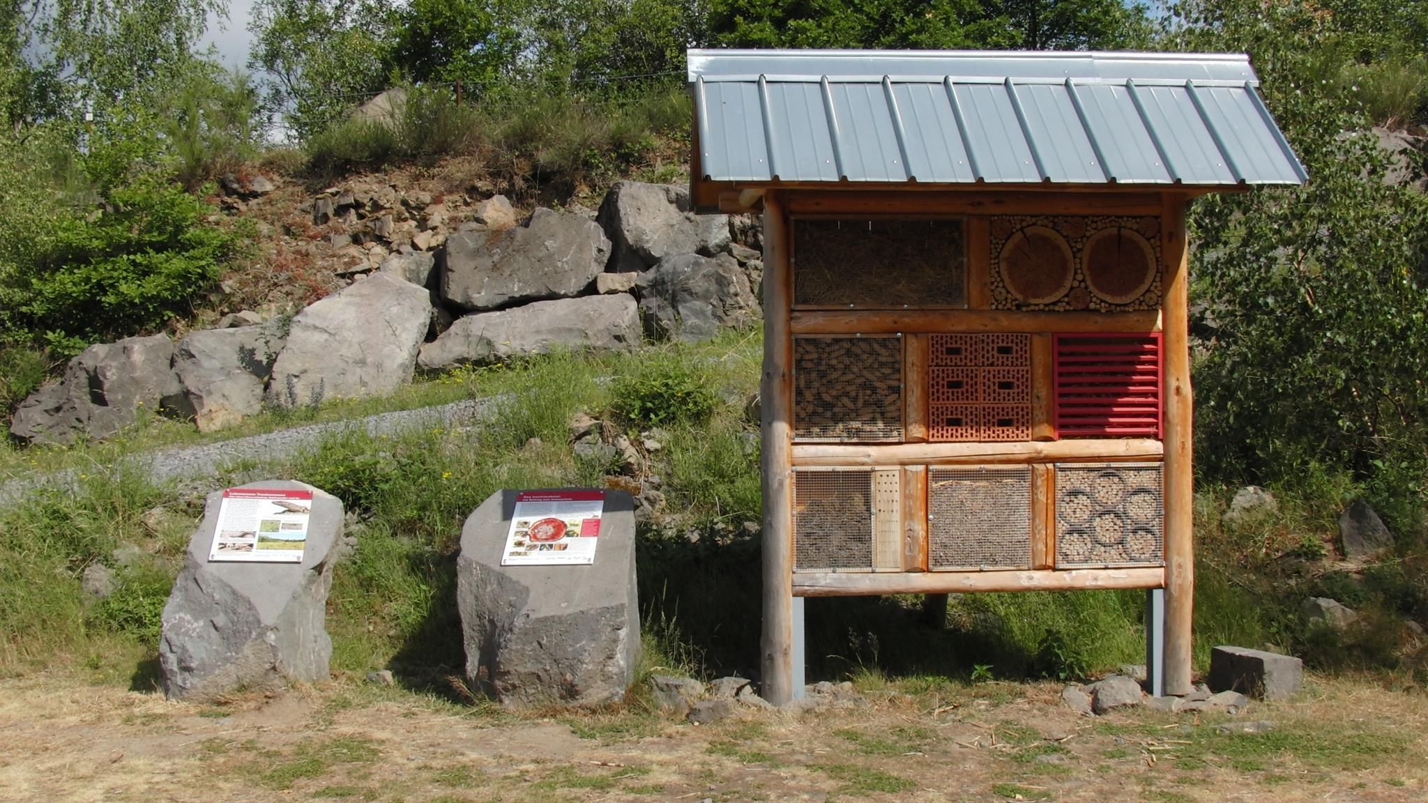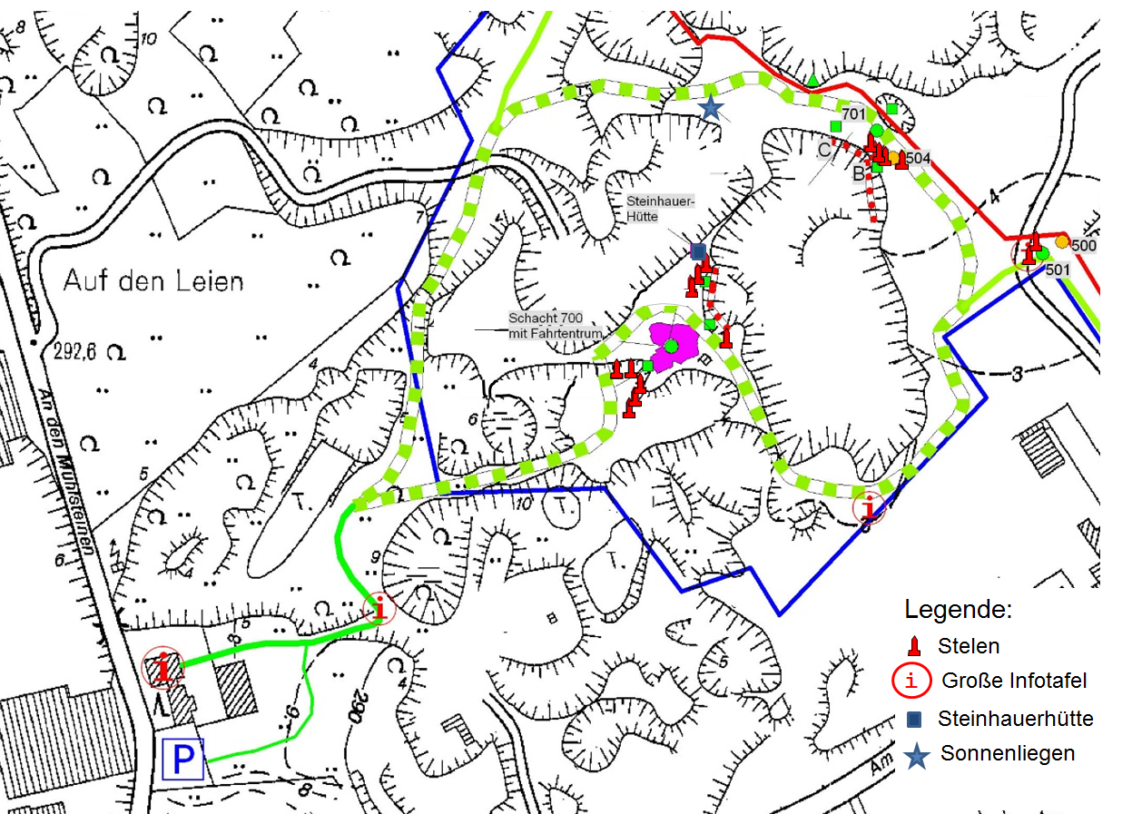 Auch zu sehen ist entlang des Weges der große Tagebau, der umgangen wird. Auf diesem Weg können Sie einige Informationen aufnehmen. Es gibt 15 Informationsstelen, 3 große Infotafeln, eine nachgebaute Steinhauerhütte, 5 Sitzbänke, 2 Sonnenstühle und 2 große Insektenhotels.