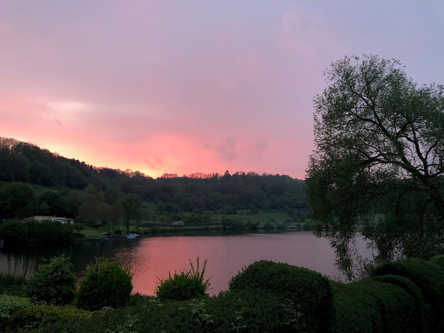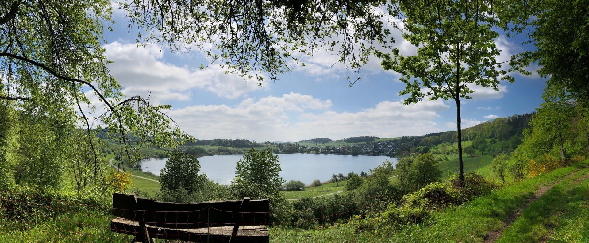Auf der großen, langgezogenen Liegewiese gibt es zahlreiche Liegeplätze und ausreichend Schatten, um die besondere Stimmung am Maar in Ruhe zu genießen.