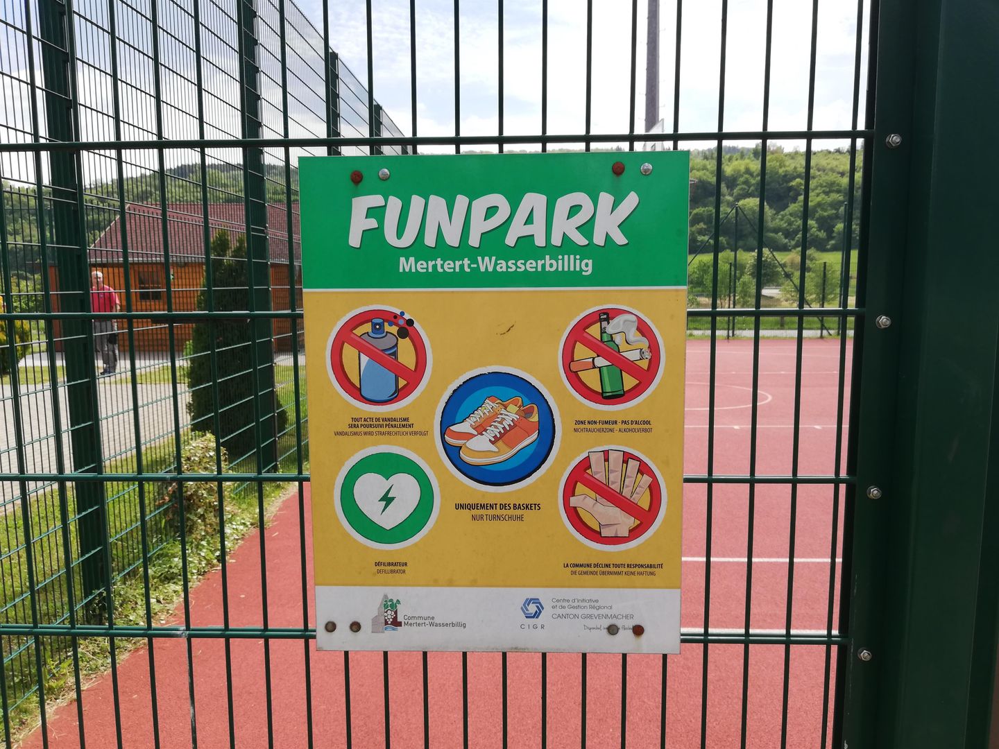 Funpark Mertert-Wasserbillig Mertert Heute geöffnetFunPark Wasserbillig mit Multifunktionsfeld, Basketkäfig, Skatepark aus Beton, Eventplatz uvm.
