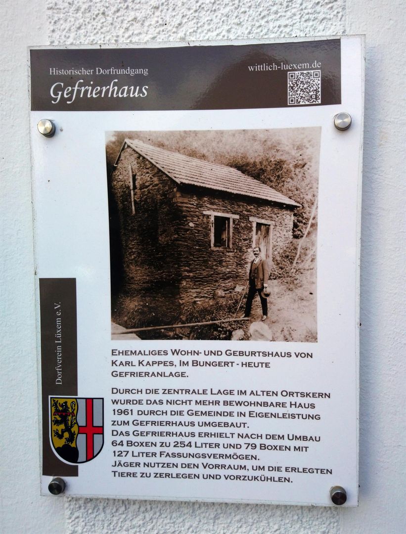 Die zentrale Lage im alten Ortskern, direkt am Sterenbach, veranlasste die Gemeinde, das nicht mehr bewohnbare Haus der Familie Kappes, 1961 zu einem Gefrierhaus für die Lüxemer Dorfbevölkerung umzubauen. Das Gefrierhaus erhielt nach dem Umbau 64 Boxen zu 254 Liter und 79 Boxen mit 127 Liter Fassungsvermögen. Heute nutzen Jäger den Vorraum, um die erlegten Tiere zu zerlegen und vorzukühlen.
