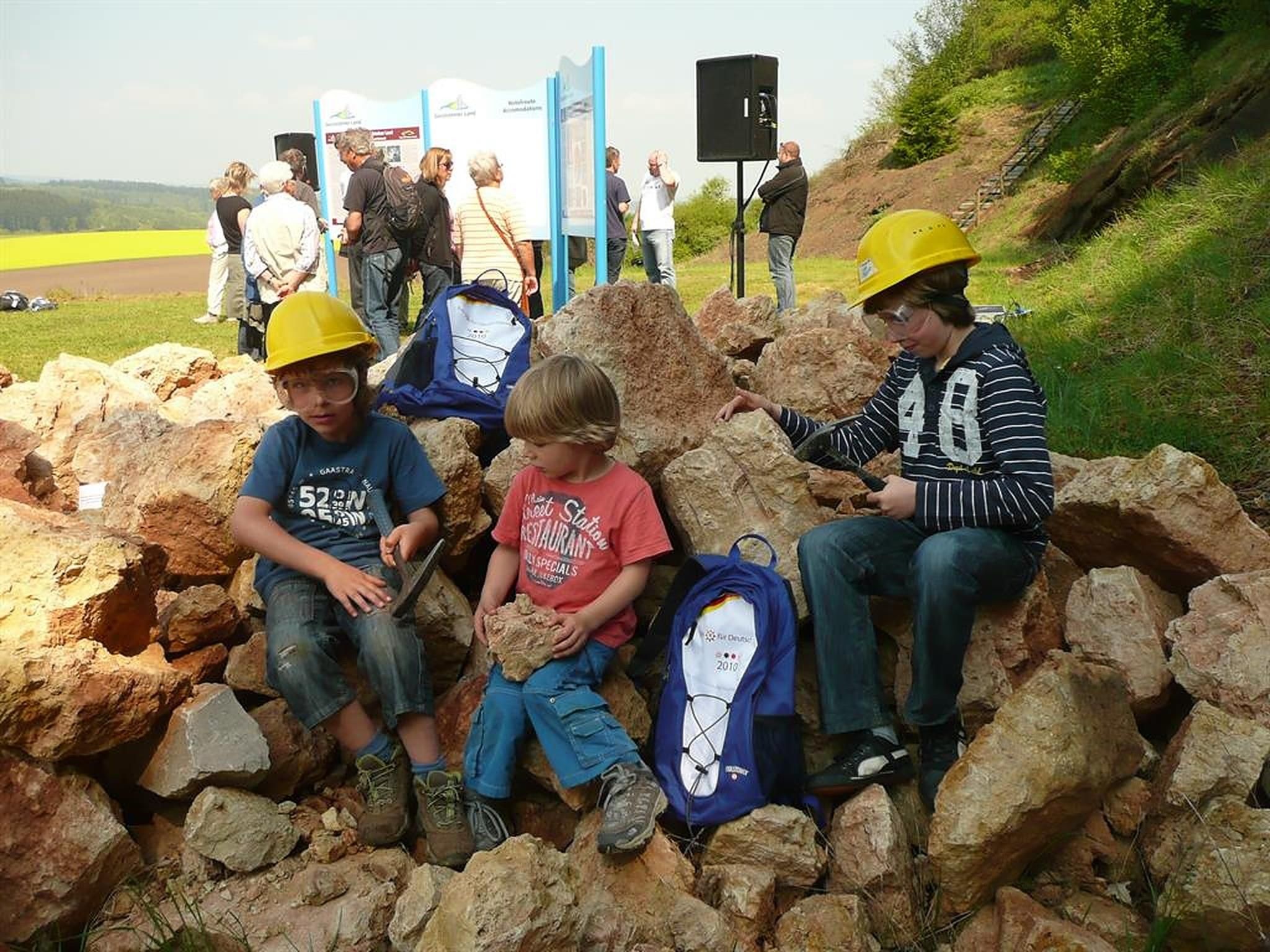 Steine üben eine magische Anziehungskraft auf Kinder aus. Sie glitzern, haben je nach Gesteinsart eine andere Konsistenz und mit Hammer und Bürste lassen sich wahre Schätze zu Tage fördern. Um dem Forscherdrang der Gesteinsdetektive gerecht zu werden, verkauft die Tourist-Information Gerolsteiner Land Geo-Beutel mit Hammer, Schutzbrille und Bürste gegen einen Preis von 9,50 €/Rucksack. Ideal für Familien mit Kindern, die Steine lieben.