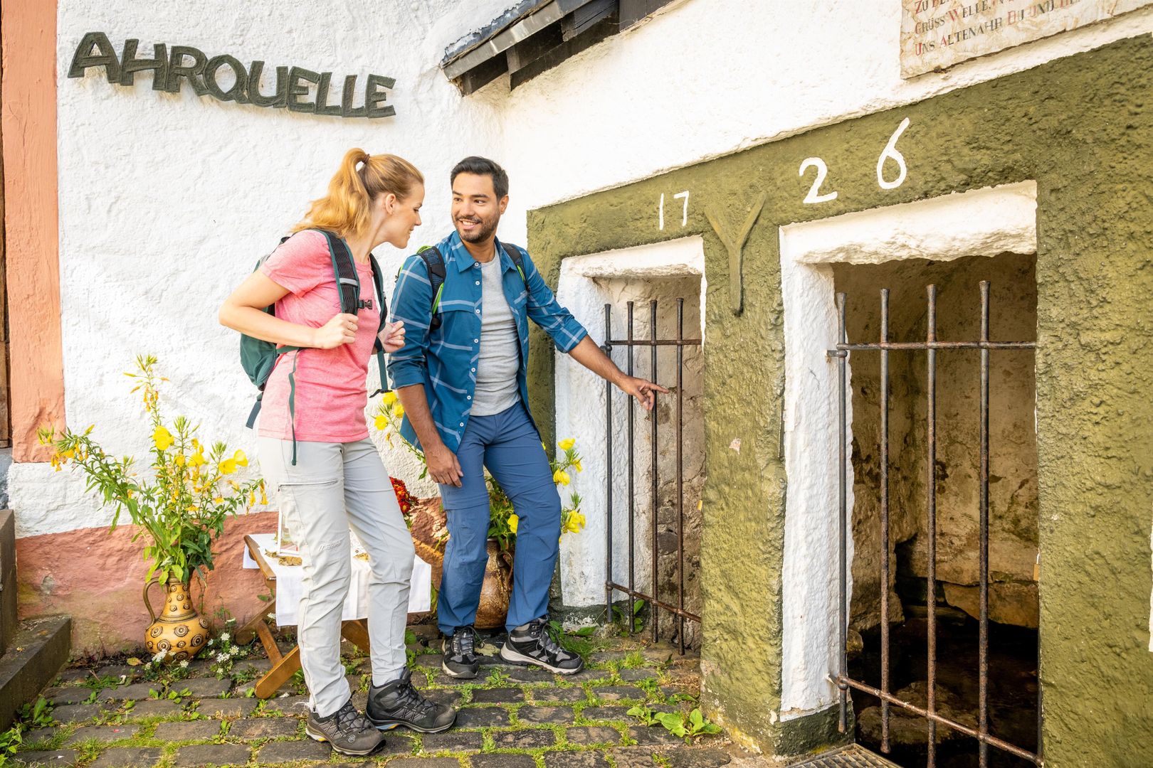 Natürlich darf auch ein Besuch der Ahrquelle nicht fehlen – ist sie doch eines der wichtigsten Wahrzeichen der Stadt. Sie entspringt äußerst sehenswert im Keller eines uralten Fachwerkhauses im Zentrum. Von der Quelle aus windet sich der Fluss anschließend durch das romantische Ahrtal bis nach Sinzig, wo er schließlich in den Rhein mündet. An der Ahrquelle startet der Ahr-Radweg und der Wanderweg Ahr-Steig. Auch der Fernwanderweg Eifelsteig (Etappe 7) führt hier vorbei.