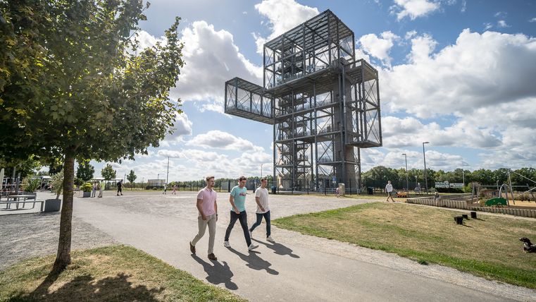 Der Indemann ist das stählerne Wahrzeichen des indelands. Von seiner obersten Aussichtsplattform genießt man einen phantastischen Rundumblick auf eine Region, die sich im stetigen Wandel befindet.