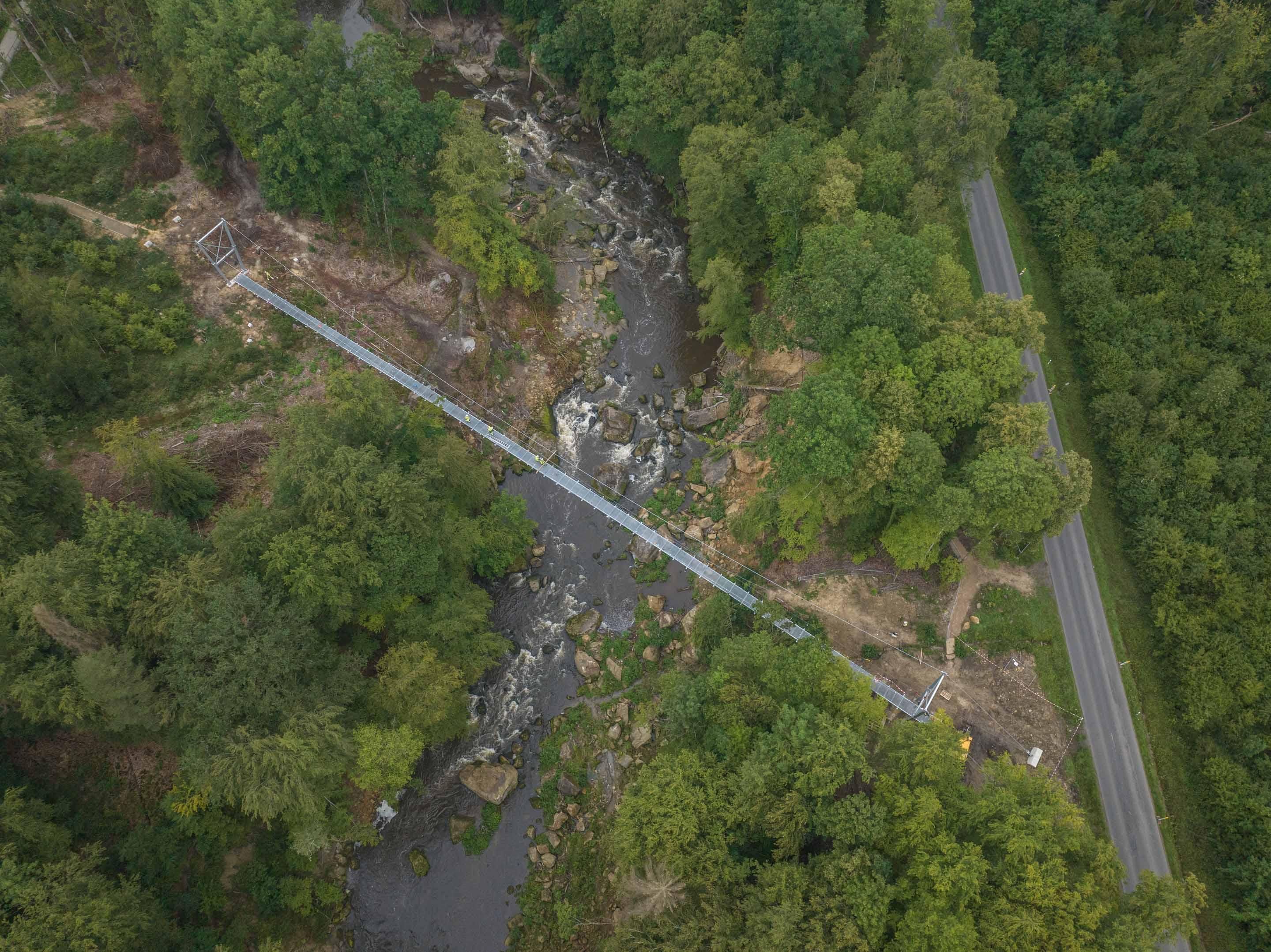 Seit dem Herbst 2023 kann man die Prüm wieder über eine neue, teilweise barrierefreie Hängebrücke überqueren. Weitere Informationen zur Brücke finden Sie in den beigefügten Dokumenten zum Download.