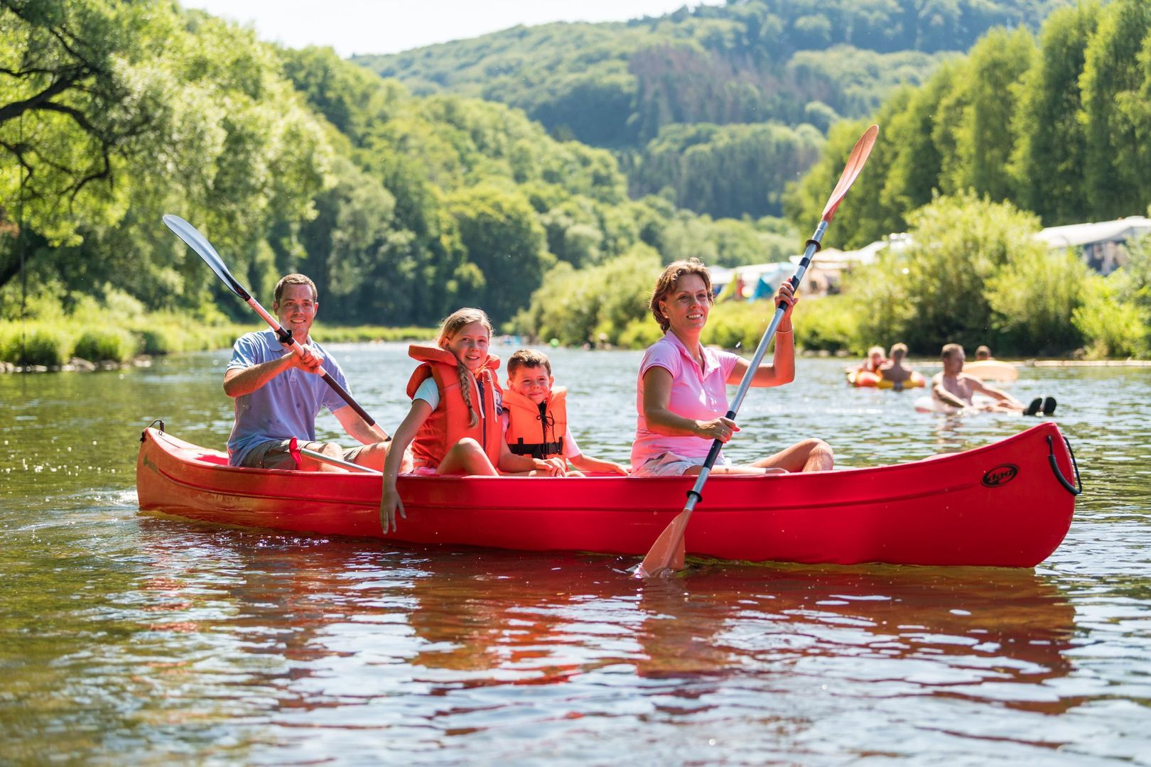 Eine Fahrt mit dem Kanu auf der Sauer bietet eine gute Möglichkeit, dem Alltagsstress zu entfliehen. Der Campingplatz Altschmiede verleiht Dreier-Kanadier sowie Ein- und Zwei-Personen-Kajaks für drei- bis vierstündige Touren.