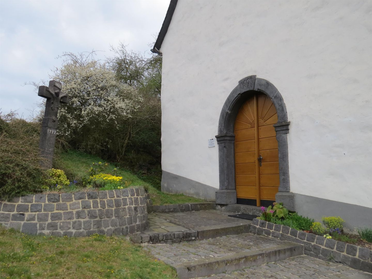 "Die Kapelle zu Virneburg wurde mit Erlaubnis der Grafen von Virneburg (eigentlich Graf Eucharius Kasimir von Löwenstein-Wertheim-Virneburg) von der Ehefrau des Gerhard Berg im Jahre 1695 erbaut auf die Hausstelle genannter Eheleute und ist dieselbe Benediziert worden 1698 um das hl. Meßopfer in derselben Gott dem Herrn darbringen zu können" (Pastor Schmitz 1836, Pfarrarchiv).