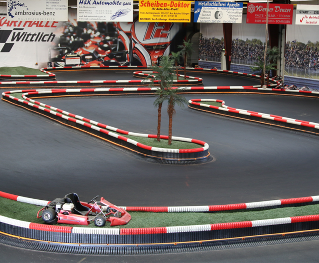 Unsere Kartstrecke ist gekennzeichnet durch perfekten Rennasphalt. 400m lang mit hochwertiger Streckenbegrenzung für übersichtlichen Bahnverlauf und maximale Sicherheit! Die neuen Sodi Go-Karts bieten einen hohen Komfort, sehr gute Stoßsicherheit und Flexibilität garantieren maximalen, unbeschwerten Fahrspaß!