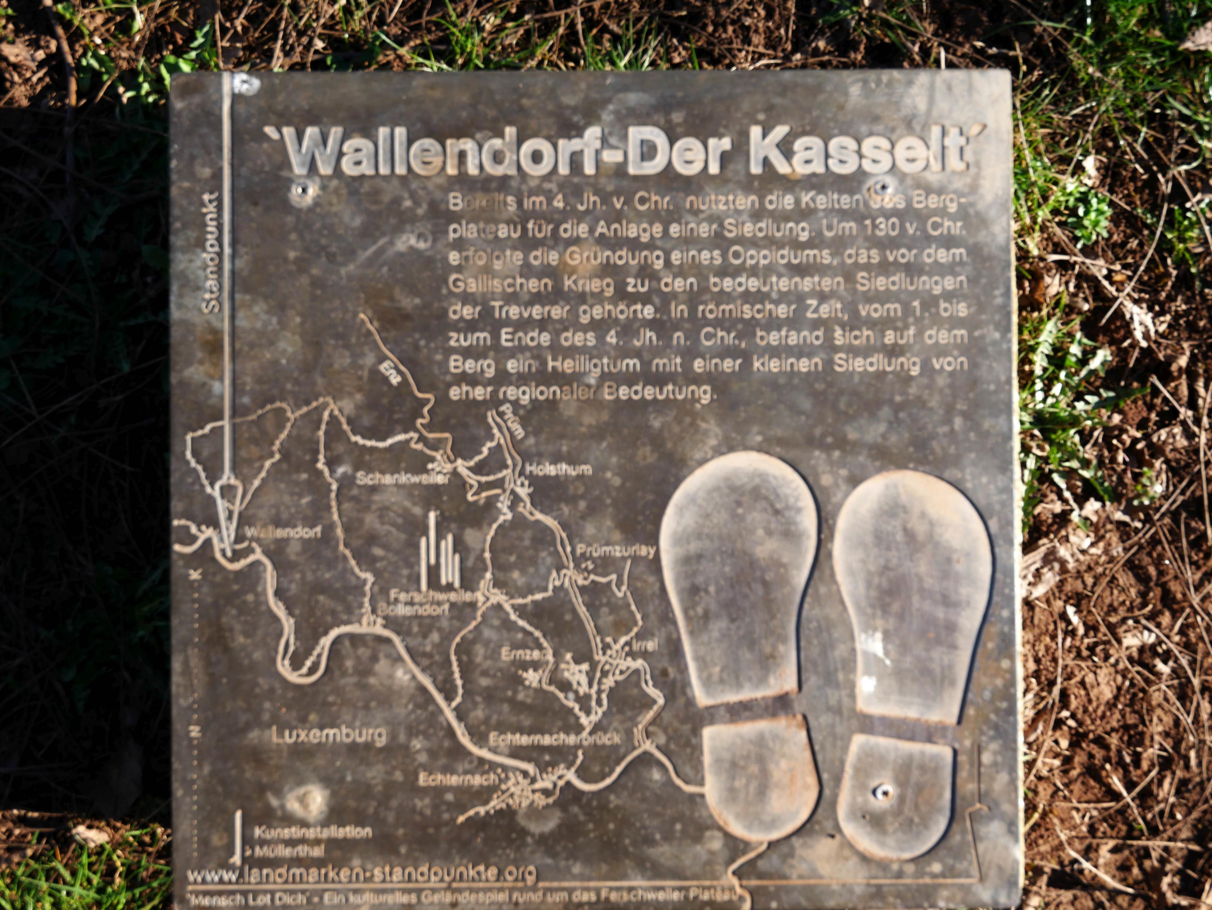 Zwischen Sauer und Gaybach ragt das Plateau des Castellberges über dem Tal und dem Dorf Wallendorf auf. Bereits im 4. Jahrhundert v. Chr. entstand auf der mehr als 40ha großen Fläche eine keltische Siedlung. Um 130 v. Chr. dann erbauten die keltischen Treverer eine stadtähnliche Großsiedlung, ein oppidum, das durch eine umlaufende mächtige Befestigungsmauer geschützt war. Sie gehörte vor dem Gallischen Krieg des Gaius Iulius Caesar (58-50 v. Chr.) zu den bedeutendsten Siedlungen der Treverer. Hier wurden treverische Münzen, auch solche aus Silber und Gold, geprägt.