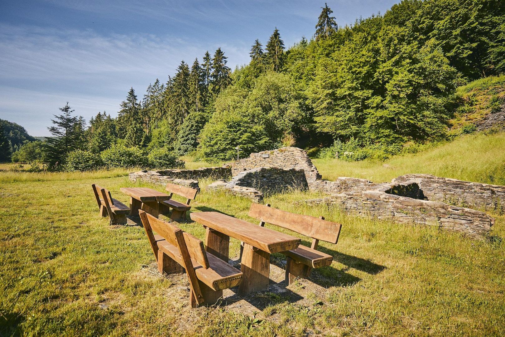 Seitdem wurden viele Gebäudereste und Trockenmauern vor dem Verfall gesichert. Stolleneingänge wurden eröffnet und Schieferhalden frei geschnitten, und ein Rundwanderweg angelegt. Info-Tafeln mit Einzelheiten zum Schieferbergbau, alten Fotos und Grundrisse von Gruben, sowie alte Förderwagen (in der Bergmannssprache Hunte), mit denen der Moselschiefer transportiert wurde, geben kleine Einblicke. Ein besonderes Highlight ist das in 2016 eingeweihte nachgebaute Spalthaus!