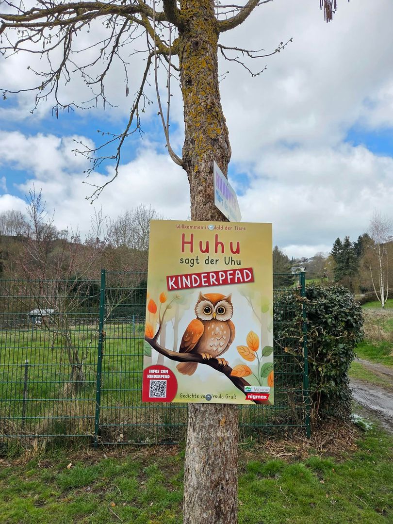 Der Kinderpfad basiert auf dem Buch "Huhu sagt der Uhu" mit Gedichten von Ursula Gruß (nigmax Verlag). In dem Buch sind alle Tiere und Gedichte gesammelt - ideal, um die Geschichten auch zu Hause weiterzulesen und die Erlebnisse aus dem Wald noch einmal aufleben zu lassen.