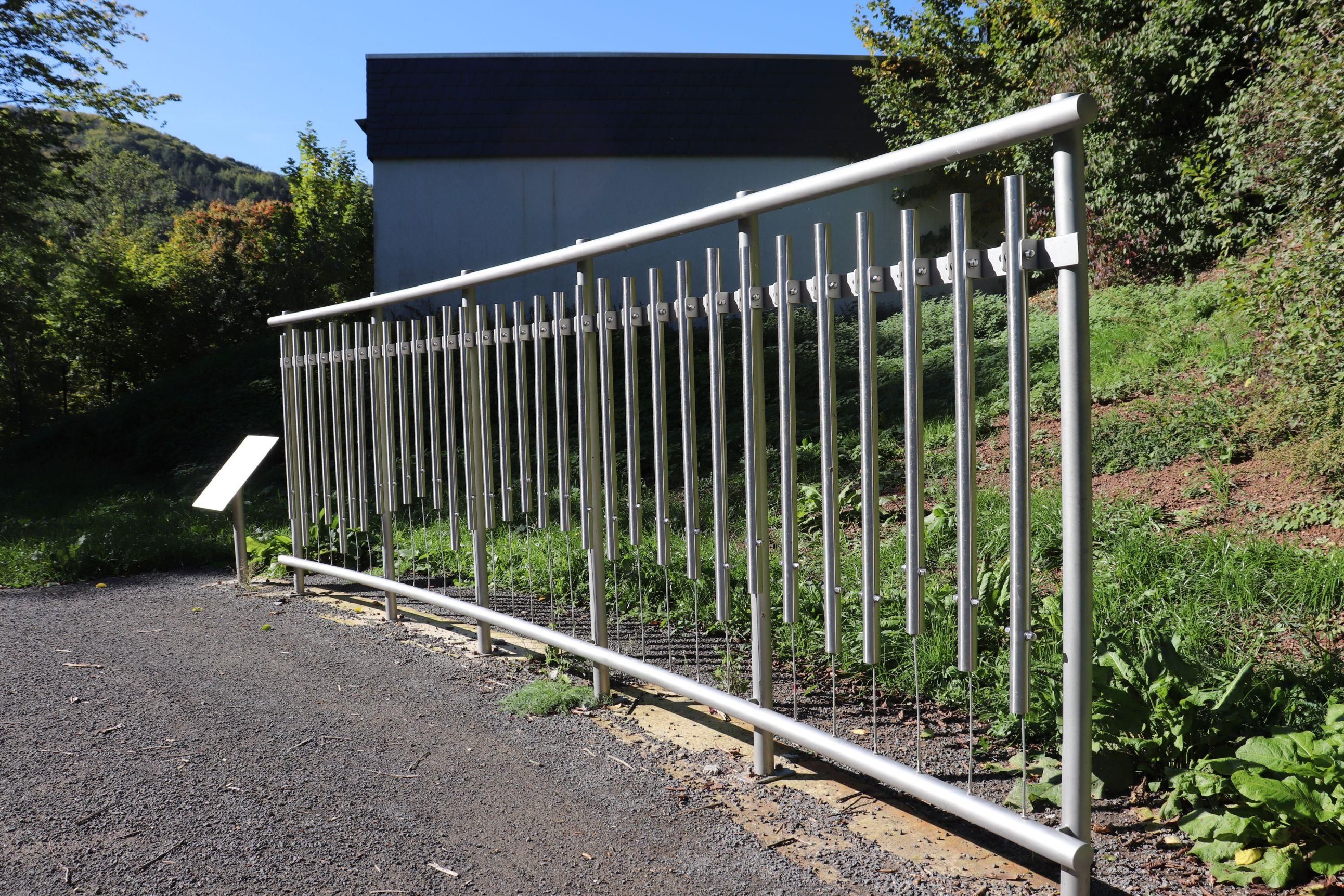 Mehrere Spielgeräte, wie z.B. ein Klangzaun, eine rotierende Scheibe, ein Kugellabyrinth und eine Schaukel für Rollstuhlfahrer sowie Sitzbänke laden zum Verweilen ein.