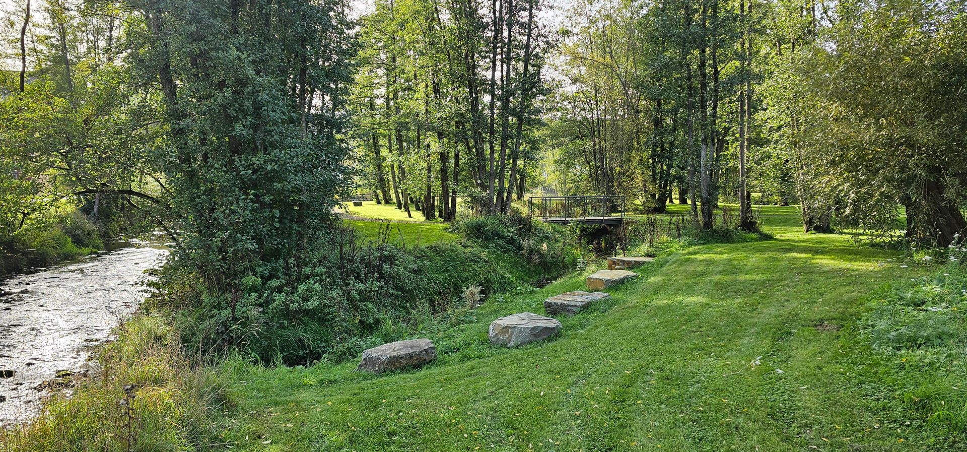 Breite Schotterwege schlängeln sich durch den Park, es geht über Brücken und die zahlreichen Ruhebänke und -liegen flüstern den Besuchern zu: „Mach es dir doch bei uns ein wenig gemütlich, genieße den Ausblick in die Natur und schau der Kyll zu, wie sie sich ihren Weg sucht“. Die Augen entspannen beim Blick auf das Grün der Wiesen und Bäume. Nach dem Ausspannen lockt ein kleiner Spaziergang durch die Anlage. An zentraler Stelle ist ein Grillplatz angelegt, den jeder nutzen kann. Ganz in der Nähe verläuft der Kyll-Radweg, auf dem viele Radler gerne unterwegs sind.