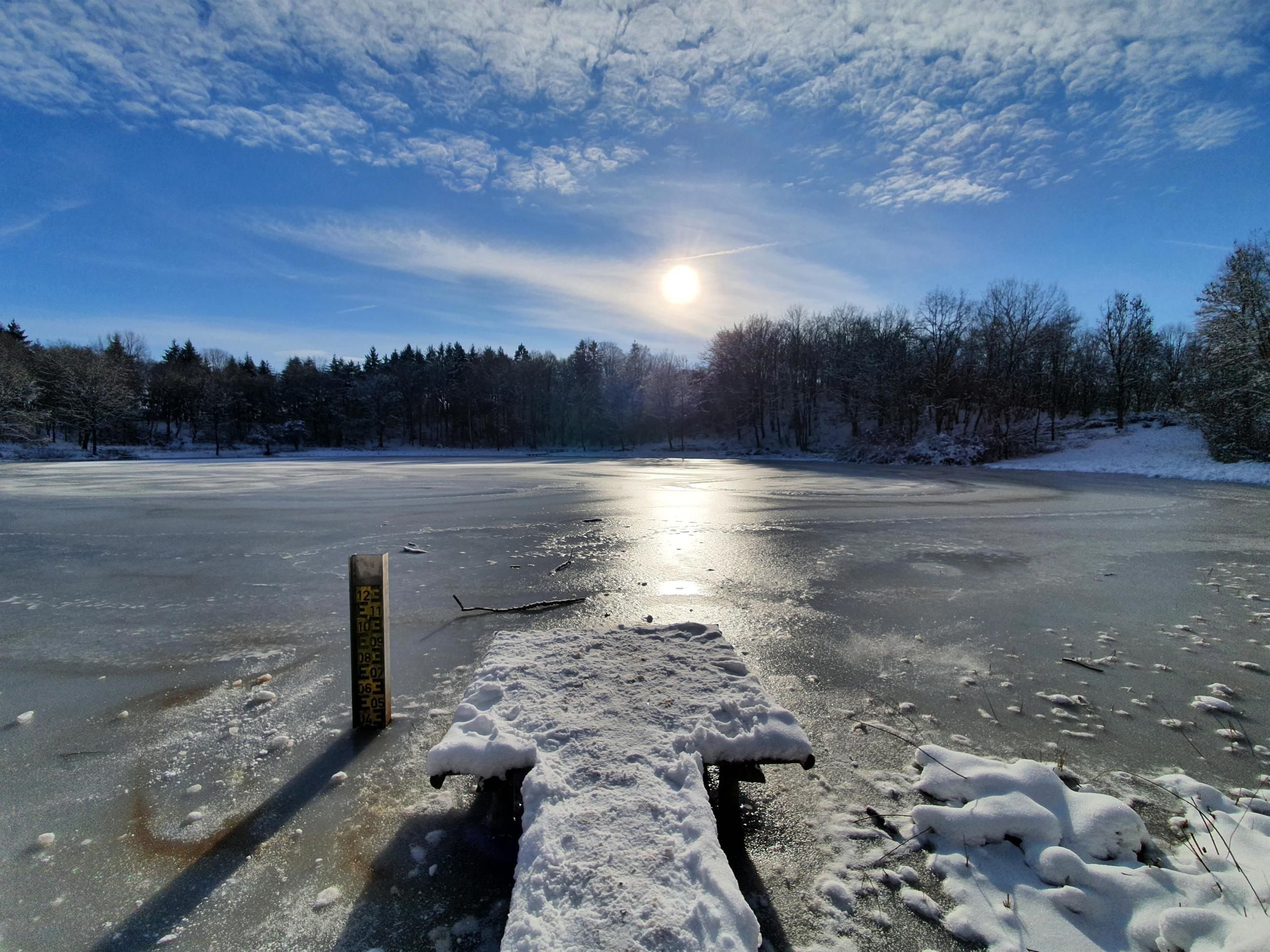 Der See ist umgeben von einem bis zu 30 Meter hohen Ringwall aus Schweißschlacken. Ein absolutes wenn auch schweißtreibendes Muss ist der Aufstieg zum über dem Wasserspiegel aufragenden Kraterrand. Ist er erst einmal erklommen, so bietet sich vom Gipfelkreuz ein einzigartiger Blick auf die umliegende Eifellandschaft und die Mosenberg-Meerfelder-Vulkangruppe.