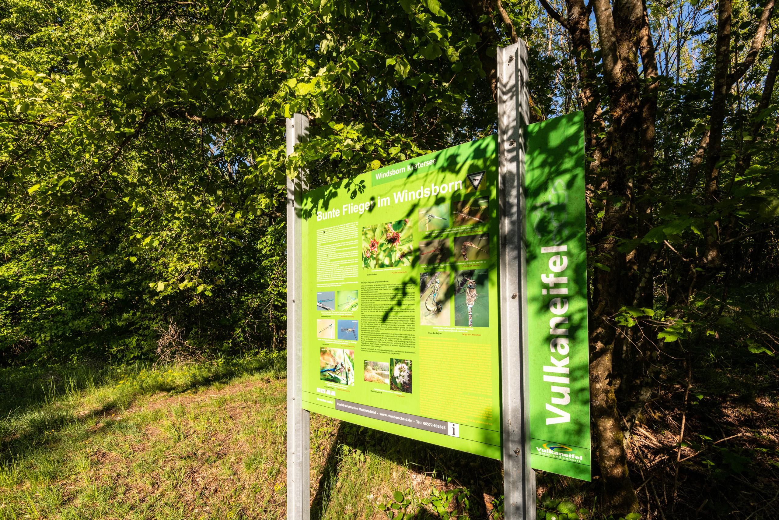 Im Gegensatz zum Maar hat sich hier vor etwa 80.000 Jahren in einem bei einer Explosion entstandenen Schlackenkegelkrater Regenwasser gestaut. So entstand der einzige Kratersee nördlich der Alpen, der ständig mit Regenwasser gefüllt ist: der Windsborn Kratersee. Der See liegt auf einer Höhe von 497 Metern üNN. Der Krater hat einen Durchmesser von 300 Metern und ist rund 30 Meter tief. Der See ist etwas kleiner. Seine Oberfläche beträgt 13.000 Quadratmeter und seine Tiefe 80 bis 150 Zentimeter. Doch der Kratersee verlandet von außen nach innen und schrumpft langsam.
