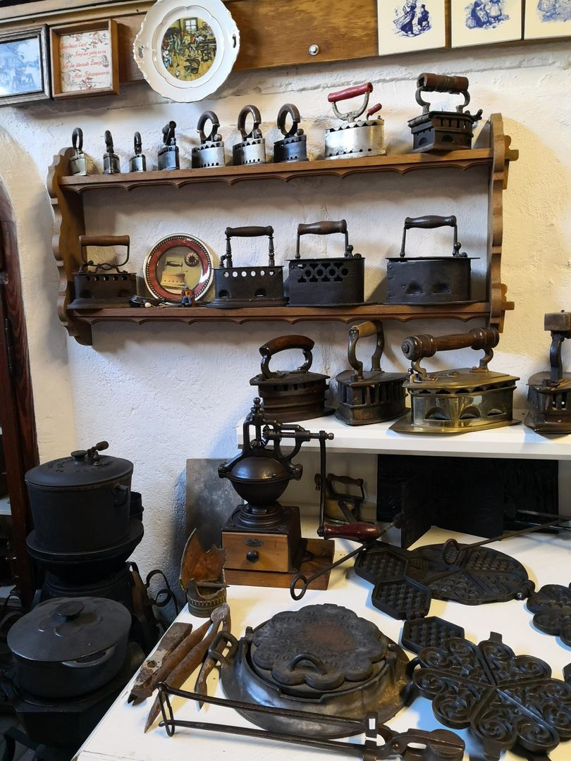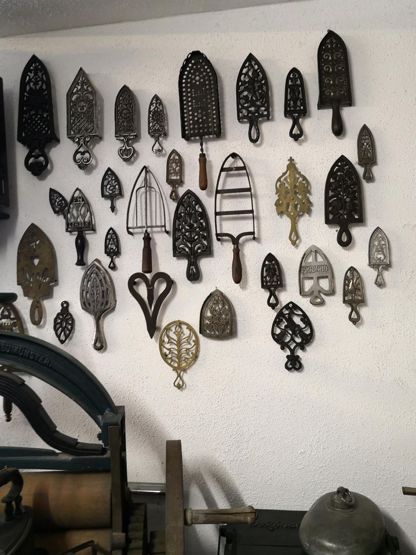 Zu bewundern sind alte Haushaltsgegenstände, darunter viele Bügeleisen und ausgefallene Bügeleisenöfen aus den längst vergangenen Epochen.