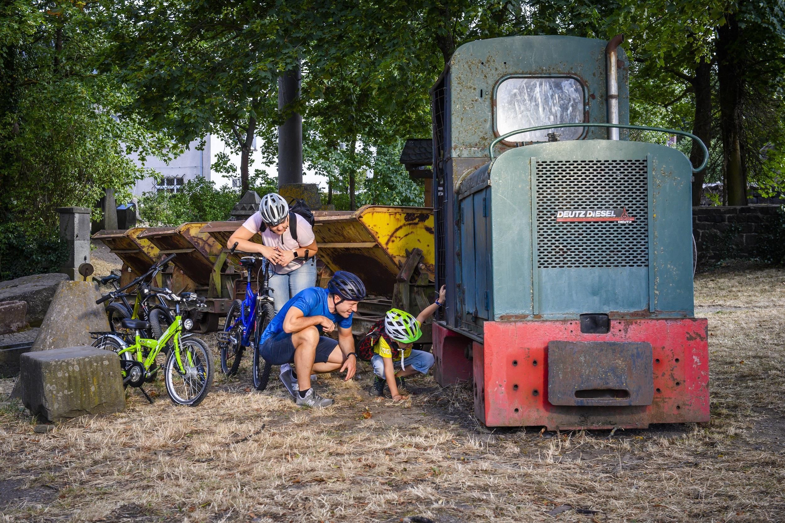 Ebenfalls direkt im Eingangsbereich steht ein weiteres Prunkstück - der Schläsch-Express, ein Nachbau einer alten Grubenbahn mit Loren. Im unteren Bereich der Museumslay entstand eine Steinmetzhütte sowie ein Grubenkran. Mit diesem Kran wurden früher die Steine verladen und anschließend zur Weiterverarbeitung transportiert. Ferner kann sich der Besucher über alte Arbeitsmethoden, wie z. B. das Reißen eines Basaltsteins in den einzelnen Arbeitsschritten, informieren. Werksteine aus heimischem Vulkangestein sind ebenso ausgestellt, wie künstlerisch gefertigte Skulpturen. Auch eine Grubenschmiede fand ihren Platz auf der Lay. Hier wurden früher die Werkzeuge geschmiedet, heute nur noch das Glück. Denn als "Außenstelle" des Mendiger Standesamtes werden nun auf Wunsch (und entsprechender Terminvereinbarung) Trauungen auf der altehrwürdigen Lay durchgeführt.