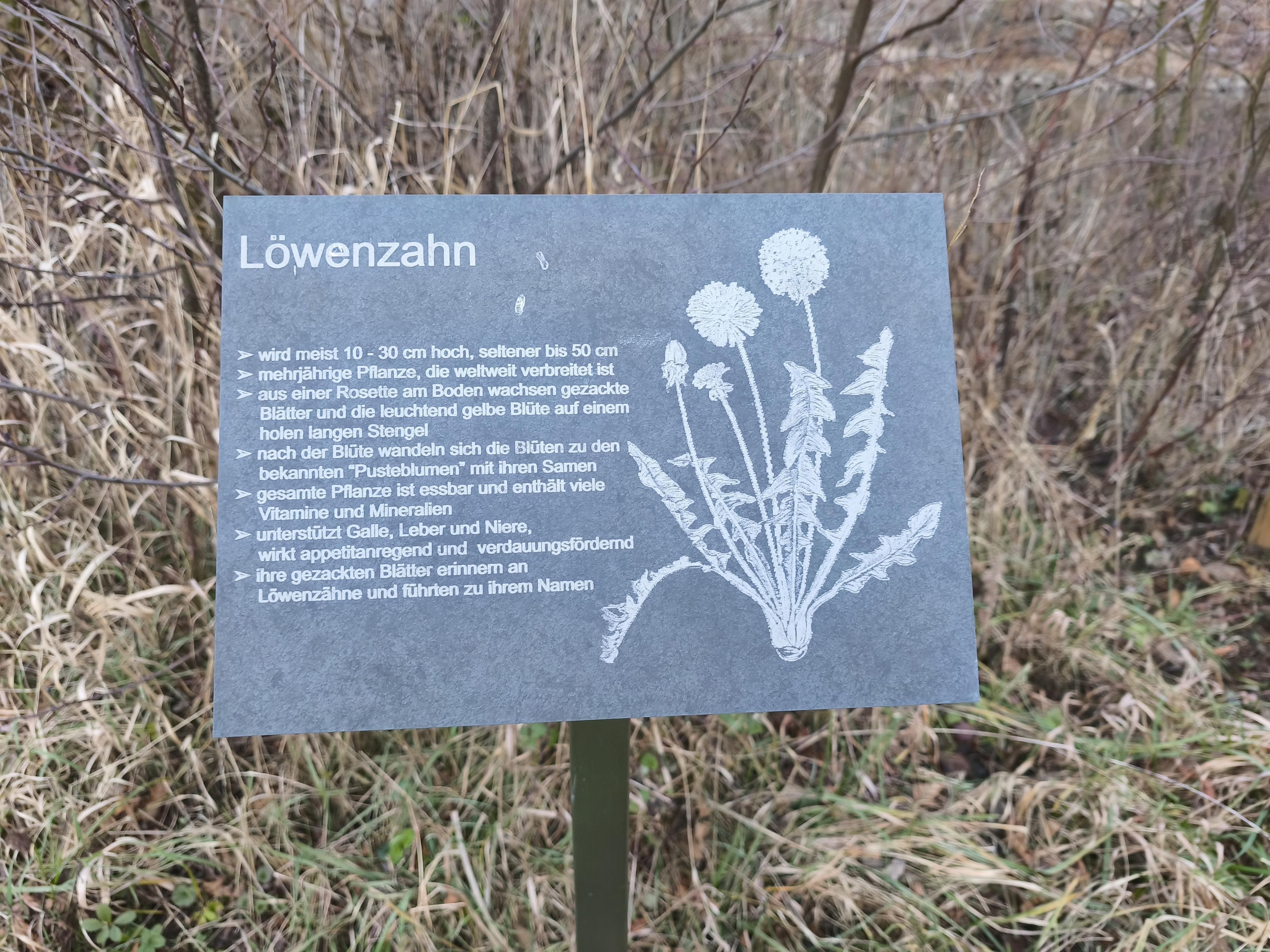 Entlang des rund 400 m langen Weges präsentieren 16 Schiefertafeln Informationen über Tiere wie Eisvogel, Bachforelle oder Rotmilan sowie Pflanzen und Bäume wie Spitzwegerich, Hainbuche und Pfaffenhütchen. Insektenhotels und Erinnerungstafeln an die Flut ergänzen den Naturpfad als Ort des Lernens und Verweilens.