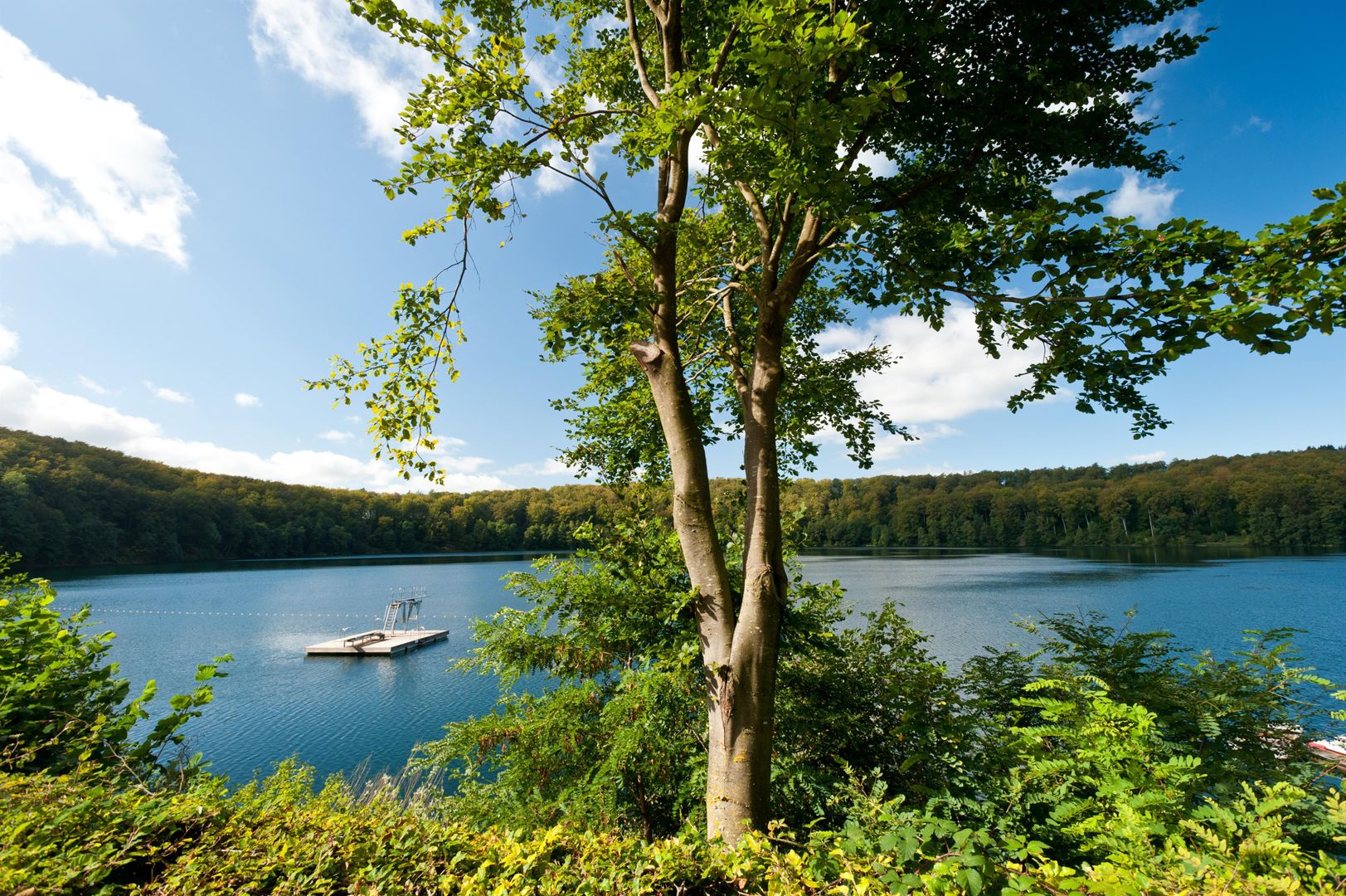 Zu den großartigen Naturschönheiten der Vulkaneifel zählt das Pulvermaar, eingebettet in eine herrliche Landschaft, umgeben von Buchwäldern – ein Naturdenkmal vulkanischen Ursprungs. Als Deutschlands tiefstes Maar lädt es mit seinem kristallklaren Wasser sowohl zum Schwimmen, Bootfahren oder Angeln ein. Ein behindertengerechter Einstieg ins Pulvermaar ist vorhanden. Die umliegenden, gepflegten Liegewiesen bieten dem Badegast Gelegenheit nach dem Schwimmen im Naturbad Pulvermaar oder eines der Nichtschwimmerbecken oder nach der Benutzung der Wasserrutsche ausgiebig zu relaxen. Spielgeräte und ein Kinderplanschbecken bieten auch den Kleinen Spiel- und Badespaß. In der zum Freibad gehörenden Cafeteria mit Außenterrasse bietet sich dem Besucher und Badegast bei Kaffee, Kuchen und diversen Köstlichkeiten in gemütlicher Atmosphäre ein einmaliger Maarblick.