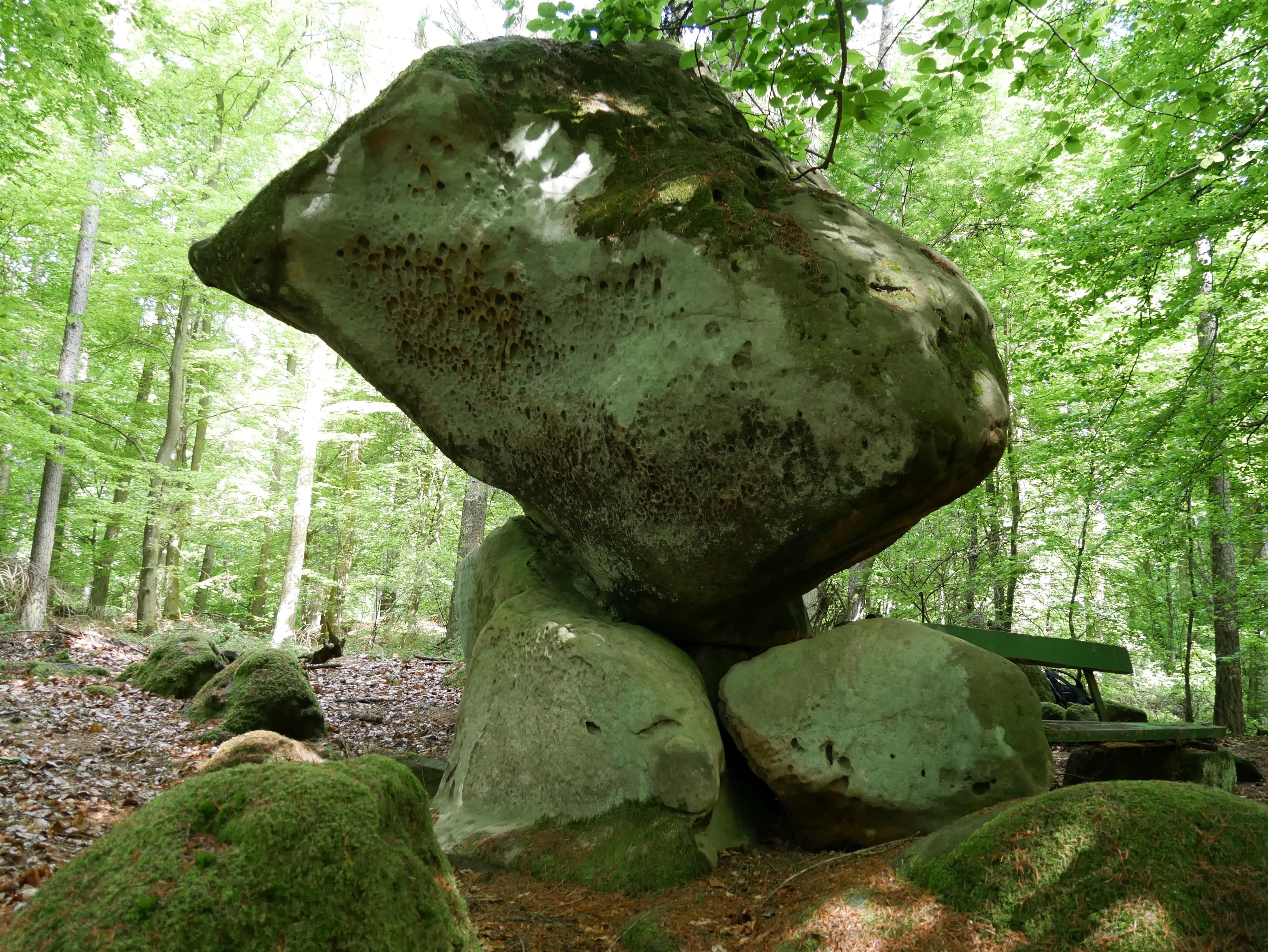 Der "Opferaltar" liegt am Naturpark-Wanderweg Nr. 57 und ist auch über den Zickzack-Fußpfad vom Diana-Denkmal bei Weilerbach aus zu erreichen.