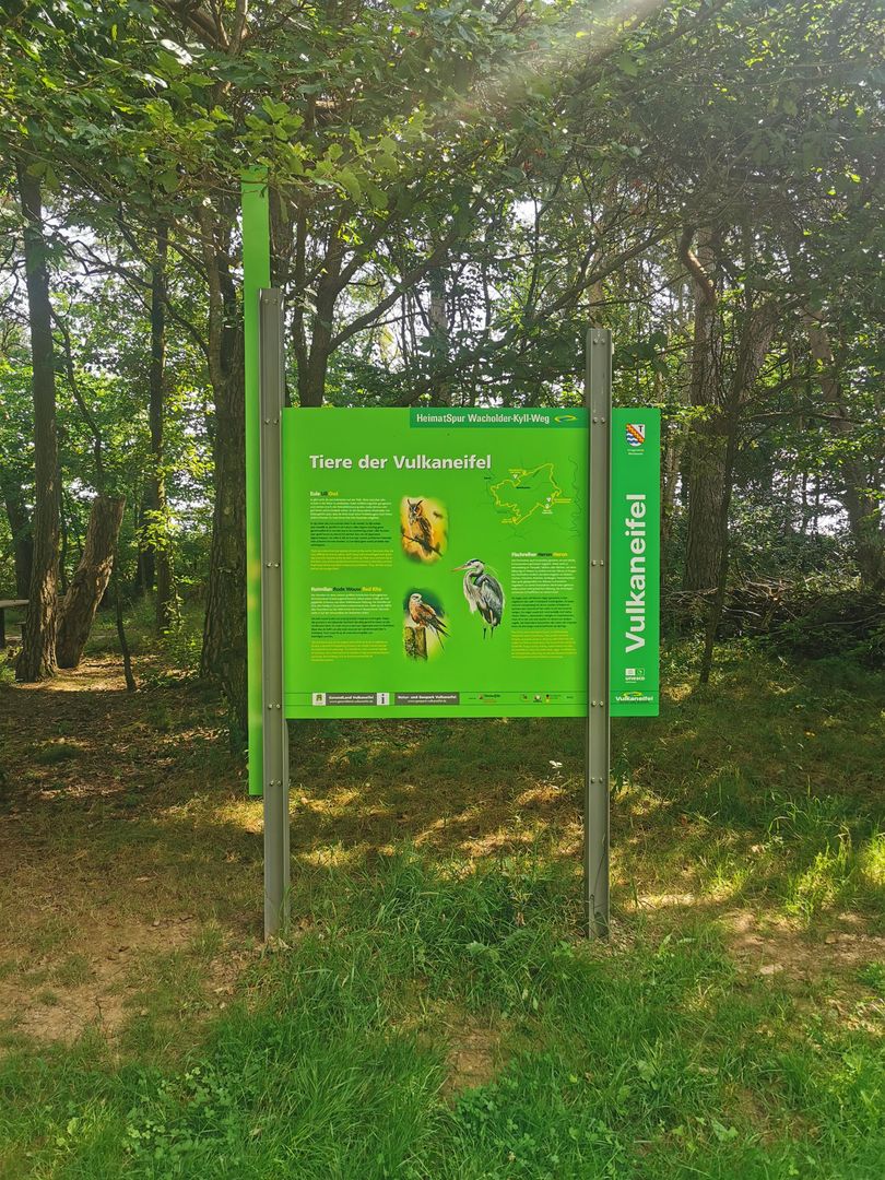 Ein Rastplatz, der sich auf die Tierwelt der Region konzentriert und durch Holzfiguren und Informationstafeln ergänzt wird, ist auf der HeimatSpur Wacholder-Kyll Weg ein attraktiver Anziehungspunkt für die Besucher und Wanderer.