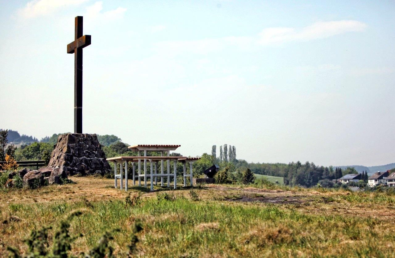 Als Ehrenkreuz für die Gefallenen des ersten und zweiten Weltkrieges wurde auf dem "Riethel" am 18.11.1954 das Ehrenkreuz eingewiehen. Vom Standort des Kreuzeses, der zugleich als Aussichtspunkt dient, hat man eine tolle Aussicht auf das Dorf sowie die Umgebung. Im Jahr 2006 wurde eine Beleuchtung installiert, so dass das Basaltkreuz in der Dunkelheit als „Wahrzeichen“ erkennbar ist.