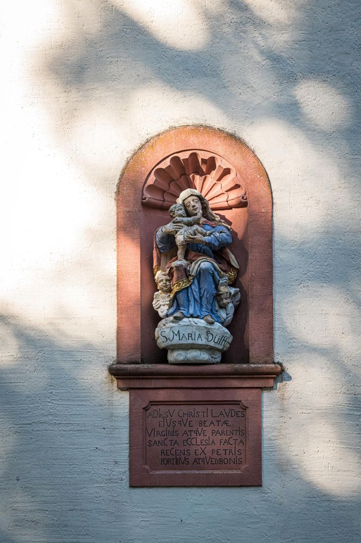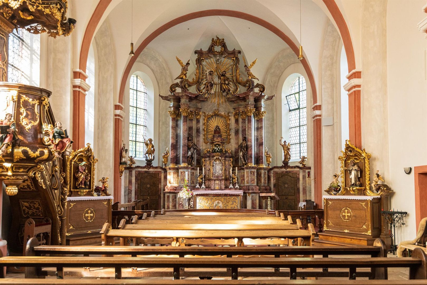 Wer die Kirche betritt, der staunt: Hinter der schlichten Fassade verbirgt sich eine reiche spätbarocke Innenausstattung. Den Mittelpunkt des Hauptaltars bildet das Gnadenbild, eine thronende Muttergottes, umrahmt von einem Strahlenkranz, aus dem 17. Jahrhundert. Dies ist die Mutter vom guten Rat, zu der jedes Jahr zahlreiche Menschen pilgern. Rechts an der Wand steht eine schwarze Madonna - die "Not-Marie", um die sich viele Legenden ranken.