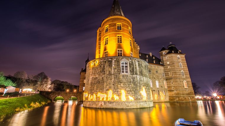 Das Schloss ist ein herausragendes Beispiel für die Baukunst vergangener Jahrhunderte. Es ist seit langer Zeit im Besitz des Adelsgeschlechts Merode und diente als Wohnsitz und Verteidigungsanlage. Heute ist es im Rahmen von Veranstaltungen für die Öffentlichkeit zugänglich. Eine Vielzahl verschiedener Events wie beispielsweise Konzerte und British Lifestyle locken zahreiche Gäste an. Besonders hervorzuheben ist der jährlich stattfindende Weihnachtsmarkt, der als einer der schönsten in Deutschland gilt. Außerdem kann die Location als Veranstaltungsort für Hochzeiten gebucht werden. In der festlich beleuchteten Schlosskulisse können Besucher handgefertigte Waren, kulinarische Spezialitäten und eine bezaubernde Atmosphäre genießen. Die gepflegten Gartenanlagen und der weitläufige Schlosspark laden zu entspannten Spaziergängen ein und bieten herrliche Ausblicke auf die umliegende Landschaft. Auf der Wasserburgen-Route gelangen Sie über einen kurzen Abstecher zum Renaissance-Schloss.