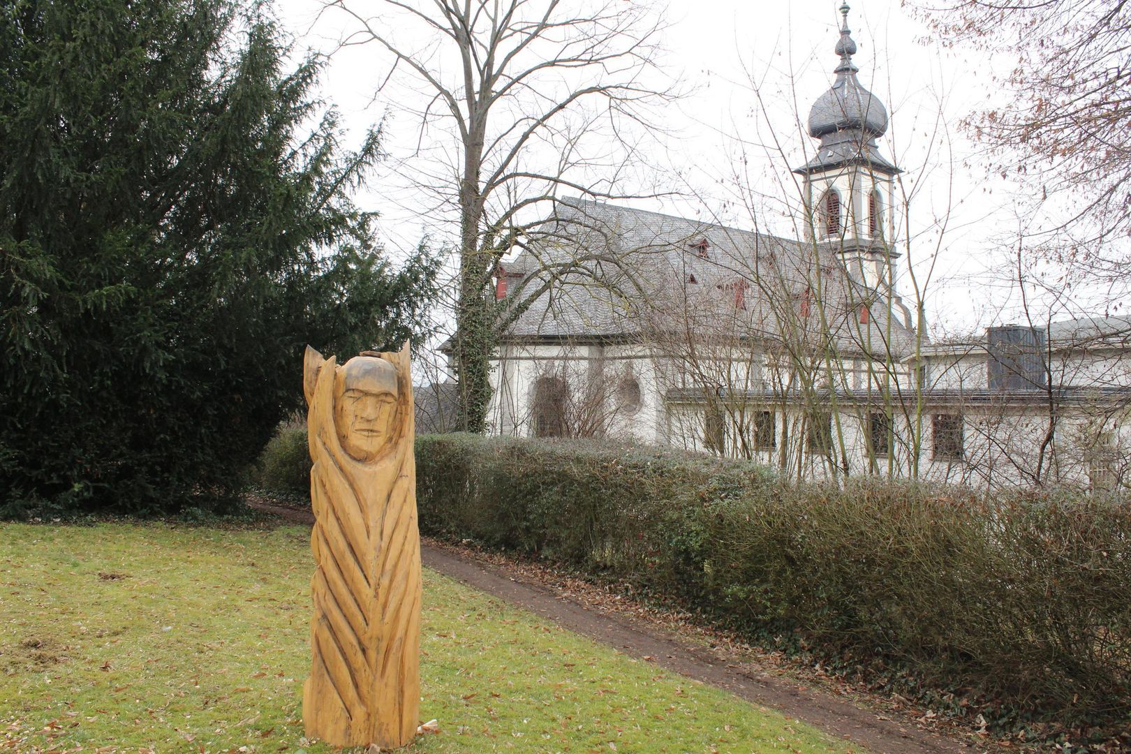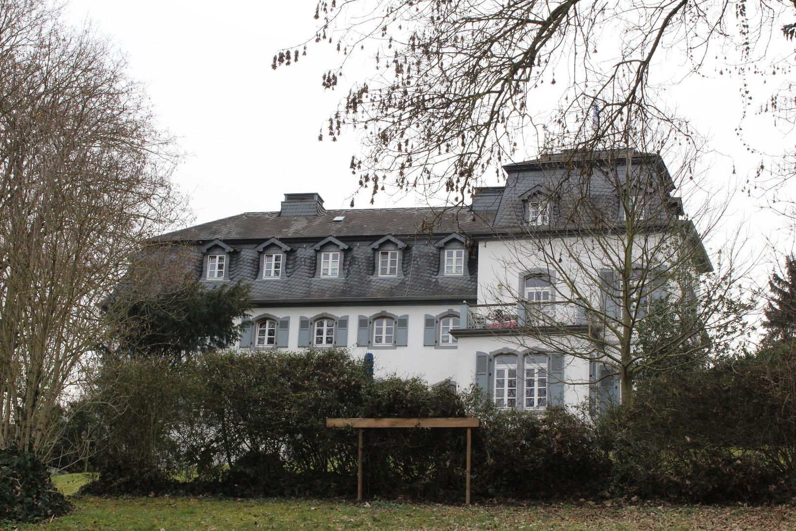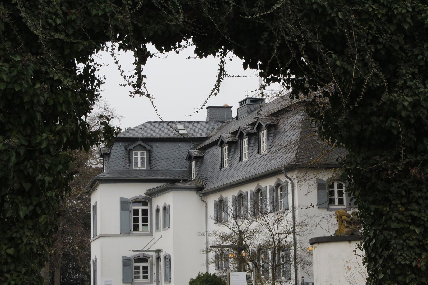 Die Parkanlage geht auf die Grafen von der Leyen zurück. Später ließ Joseph Clemens Lenné den Park mit seinem Bruder Peter Joseph neu anlegen und betrieb eine Pflanzenzucht. Neben altem Baumbestand sind barocke Pavillonbauten, das sog. Schlösschen um 1750 und der Grottenpavillon mit Weiher, erhalten. Im Schlösschen zeigt eine Ausstellung den Wandel in der Anstaltspsychiatrie seit dem 19. Jh. und Exponate zur Dorfgeschichte.