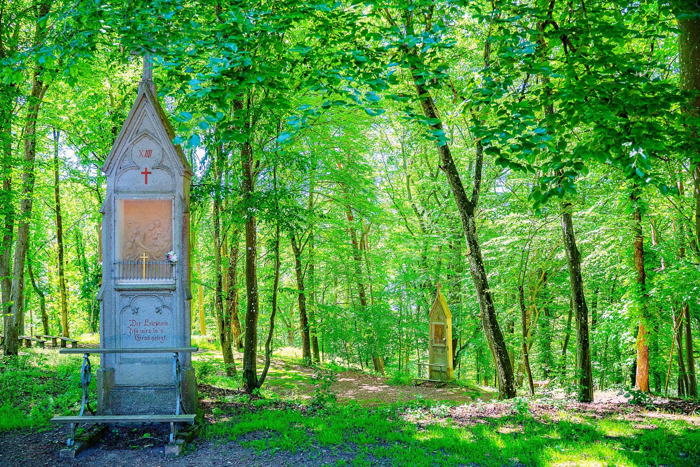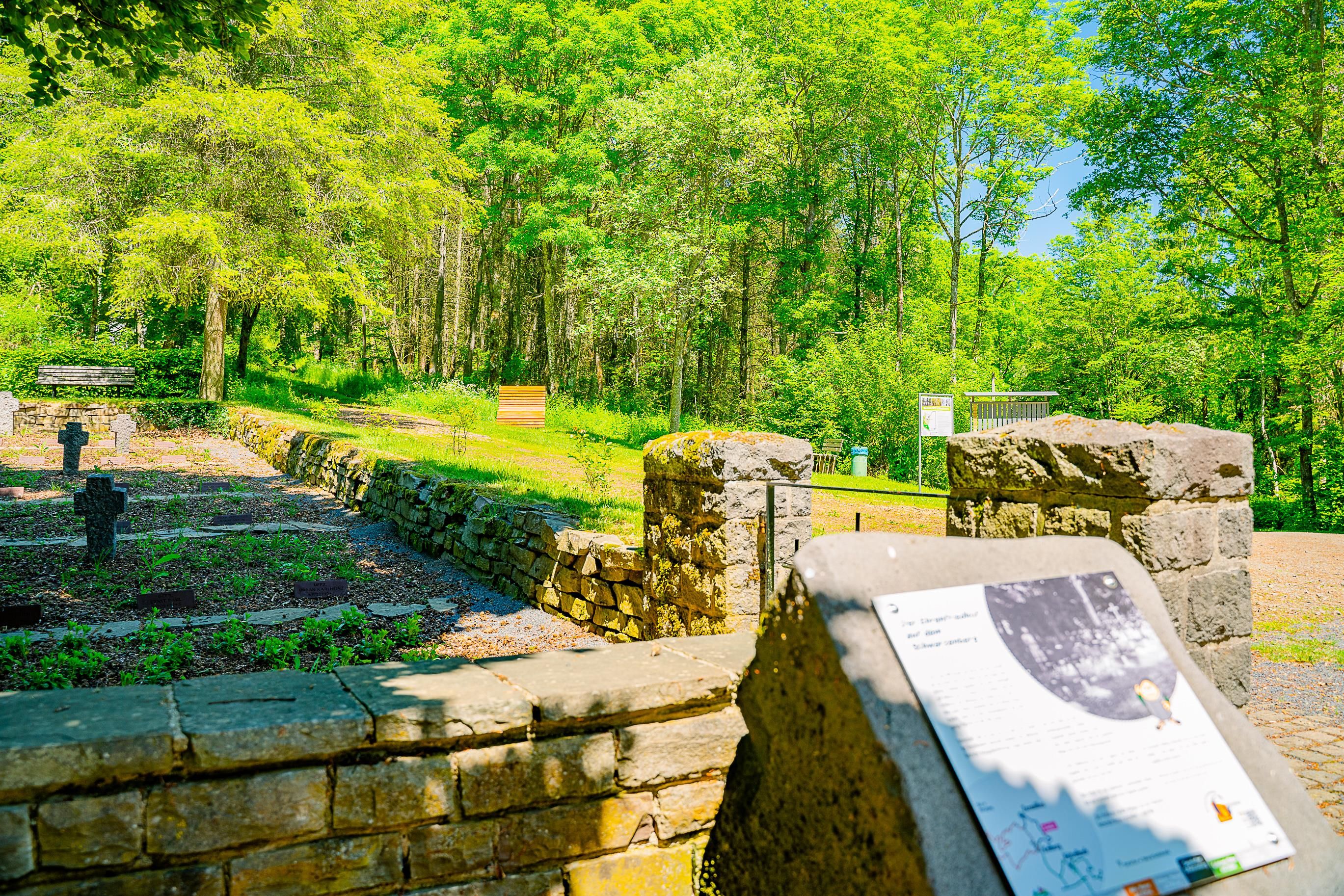 Schwarzenberg-Kapelle Auf dem 562 m hohen Schwarzenberg steht versteckt im Wald eine Kapelle, die der schmerzhaften Gottesmutter geweiht ist. Die Schwarzenberg-Kapelle wurde im Jahr 1719 errichtet. Der Altar mit der Pietà im Mittelteil wird von den Heiligen Aloisius (rechts) und Augustinus eingerahmt. Danktafeln und Krücken an den Wänden weisen darauf hin, dass die Schwarzenberg-Muttergottes bei Krankheit angerufen wurde und geholfen hat. Neben der Kapelle befindet sich der Heldenfriedhof mit den Gräbern der Soldaten, die im 2. Weltkrieg in Kelberg ums Leben kamen, etwas unterhalb steht das Gefallenenehrenmal für die Soldaten des 1. und 2. Weltkrieges.