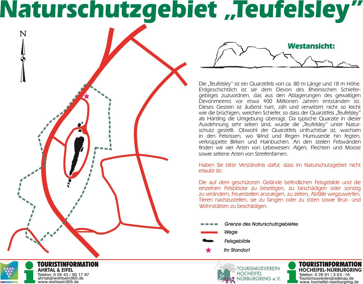Mit dem Auto zum Parkplatz oberhalb des Ommelbachtals und einem anschließenden Fußweg (Ville-Eifel-Weg des Eifelvereins) ist dieses imposante Naturdenkmal gut zu erreichen. Geübte Kletterer genießen vom Gipfel einen herrlichen Rundblick über die Höhenzüge der Eifel.