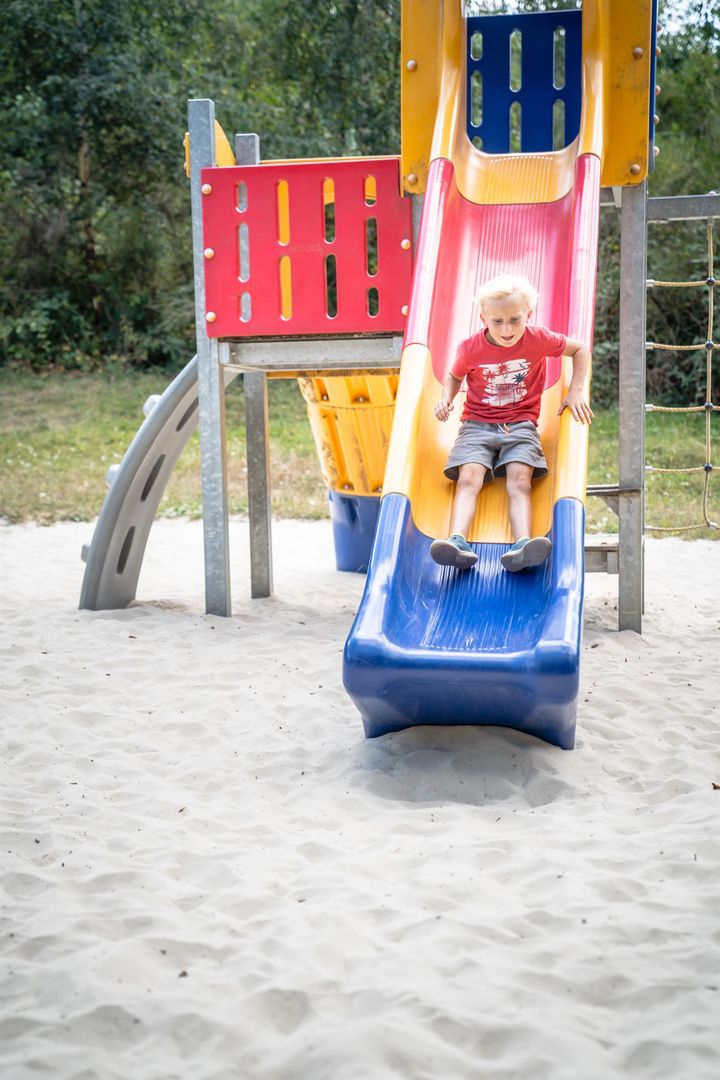 Schön gelegener Spielplatz in direkter Nähe zum Staubecken. Eine Schutzhütte mit Tisch und Bänken bietet eine perfekte Pausenmöglichkeit, bei der die Kinder sich auf den Spielgeräten austoben können.
