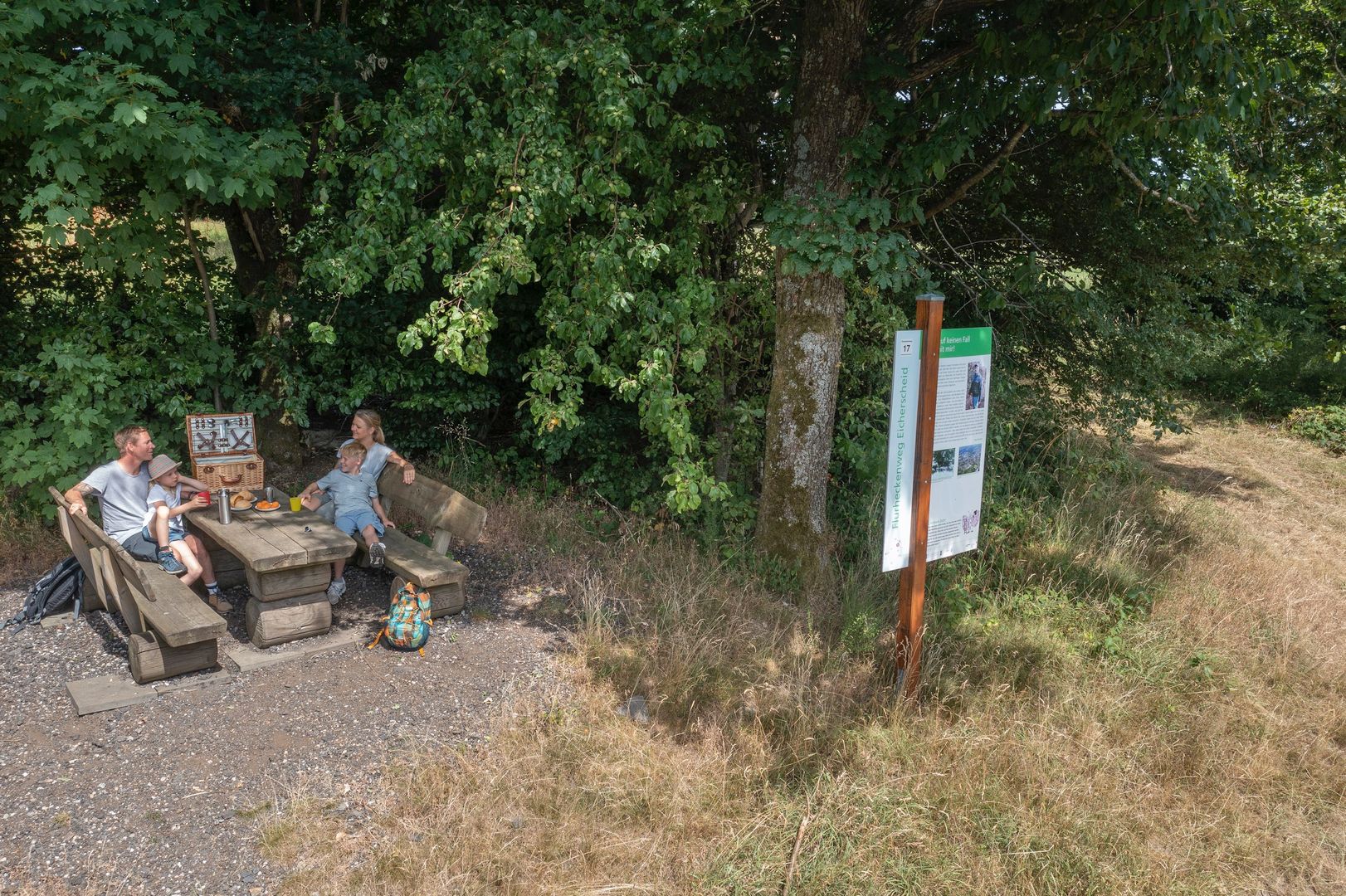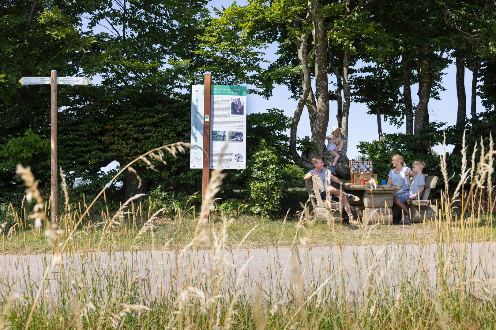 Tipp: Entlang des familienfreundichen Flurheckenweg finden Sie sieben Informationsstationen zu den landschaftlichen Besonderheiten. Der Schornsteinfeger, ein Schmetterling, begleitet Kinder auf dem Weg und stellt ihnen an jeder Infostation eine besondere Aufgabe.