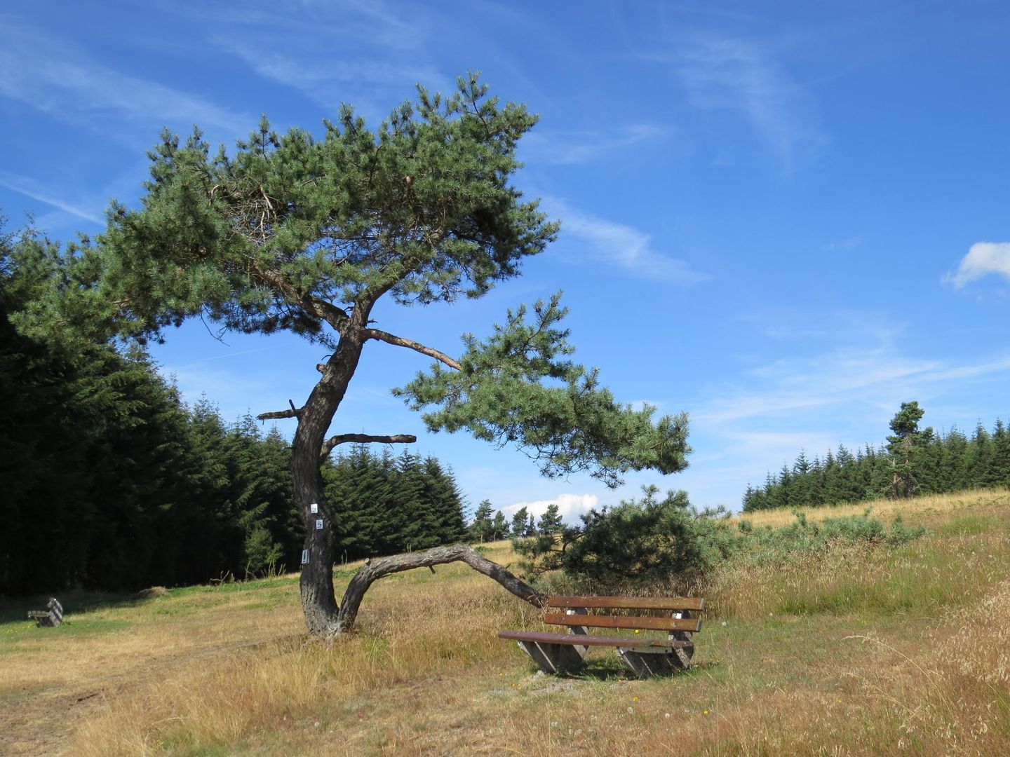 Entlang des Waldrandes führt die Strecke zuerst bergab, nach rechts weiter zum Aussichtspunkt Wolfsberg und mitten hinein in die Wacholderheiden. Nach der Umrundung des Wolfsbergs geht es zurück in Richtung L10 und danach in einer Schleife in ein lichtes Waldgebiet.